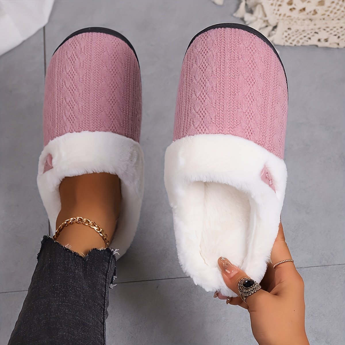 Solid Color Slippers, Casual Slip On Plush Lined Shoes, Comfortable Indoor Home Slippers