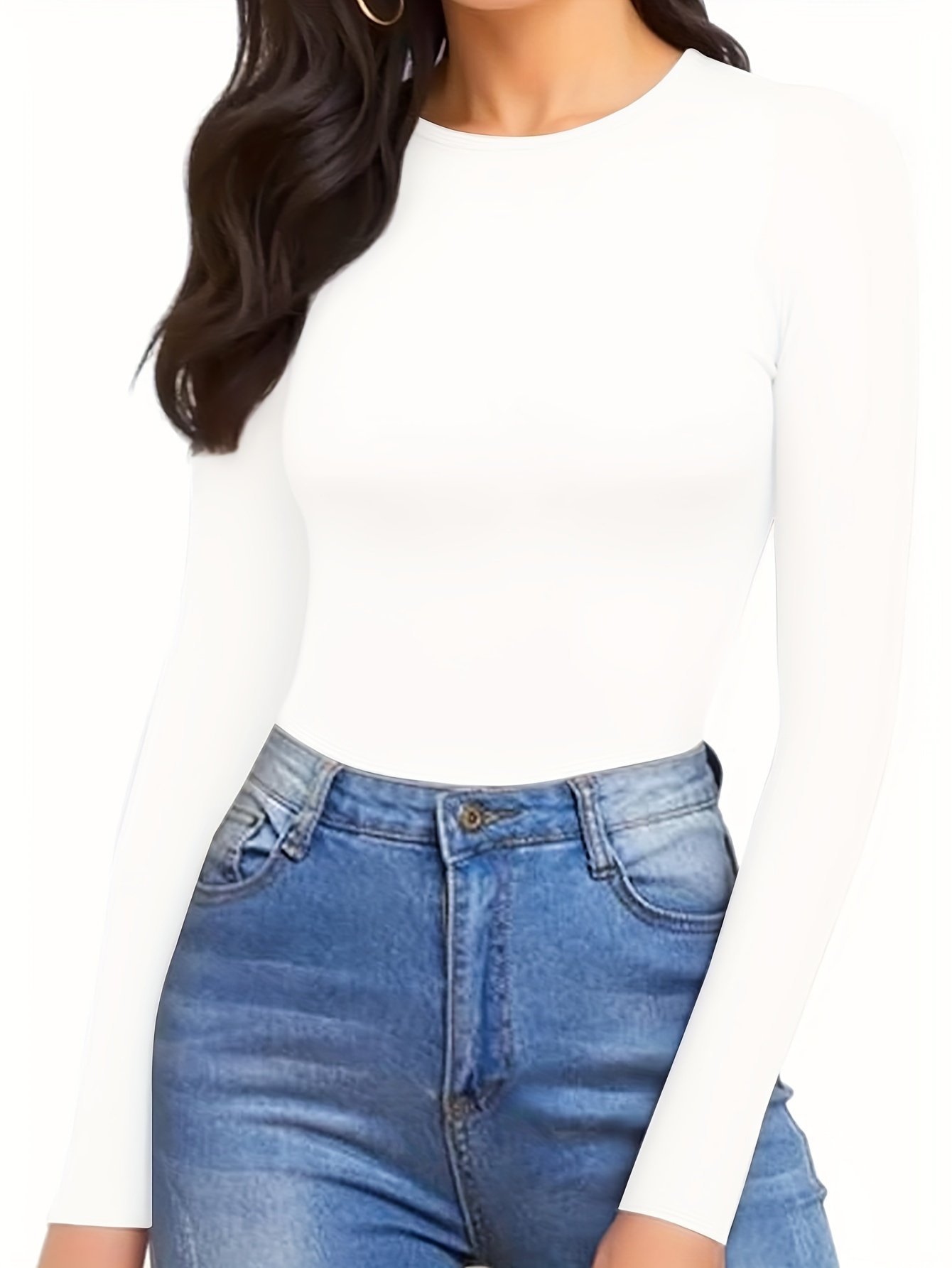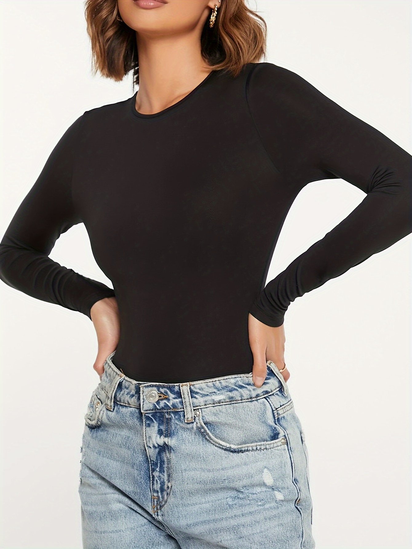 Solid Crew Neck Skinny Bodysuit, Casual Long Sleeve Bodysuit, Women’S Clothing