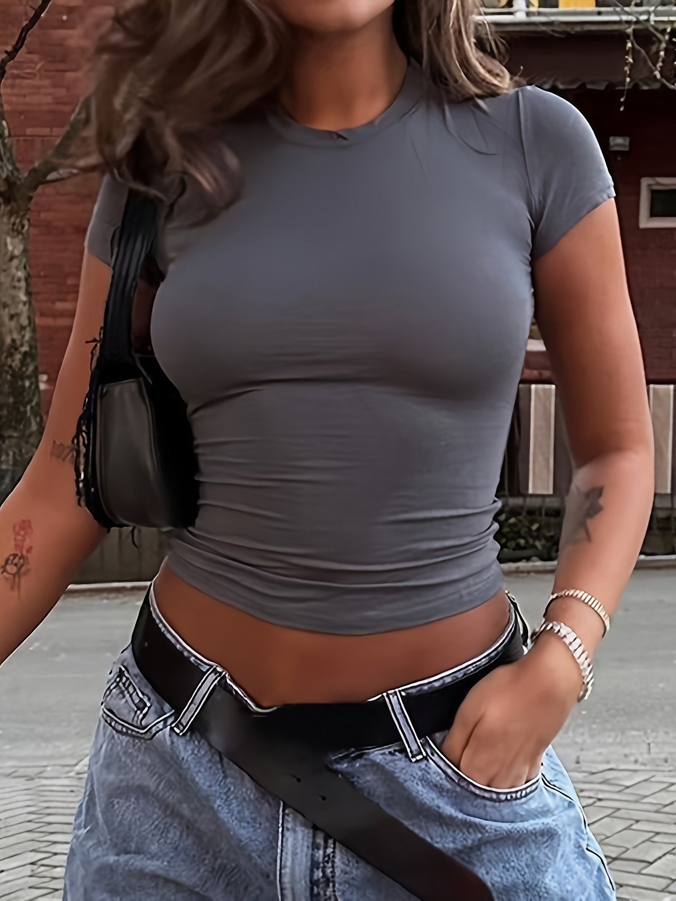 Solid Crew Neck T-Shirt, Vintage Short Sleeve T-Shirt For Summer, Women’S Clothing