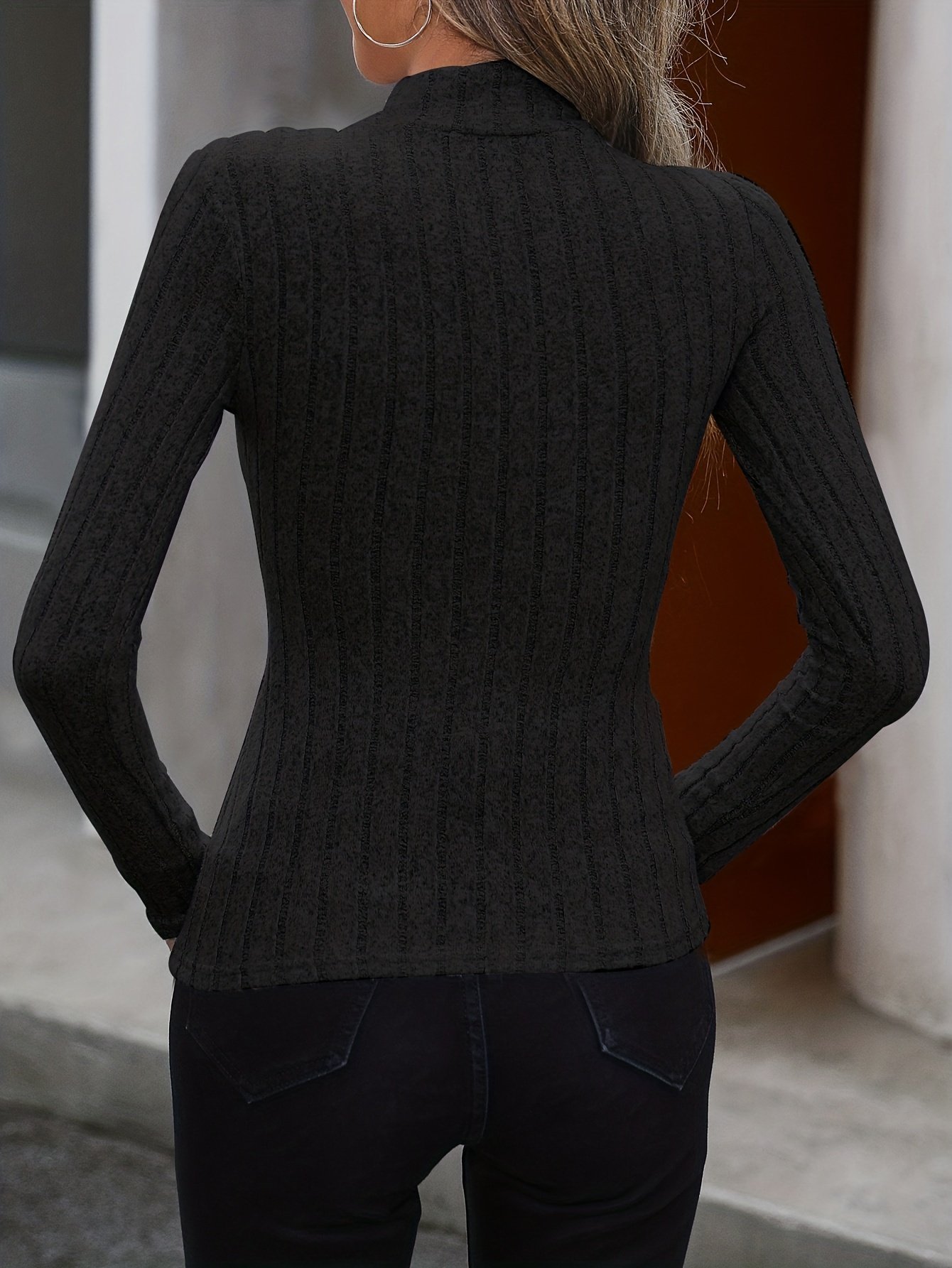 Solid Ribbed Turtleneck Top, Elegant Long Sleeve Top For Fall, Women’S Clothing