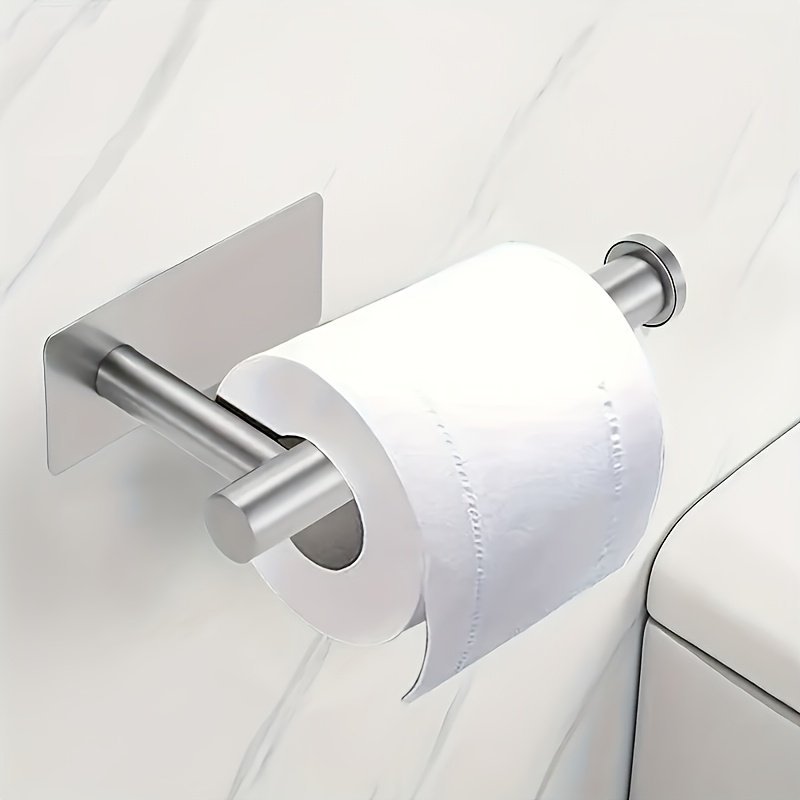 Stainless Steel Toilet Paper Holder, Self-Adhesive Wall Bracket, Modern Bathroom Tissue Holder, Shower Towel Rack Accessory
