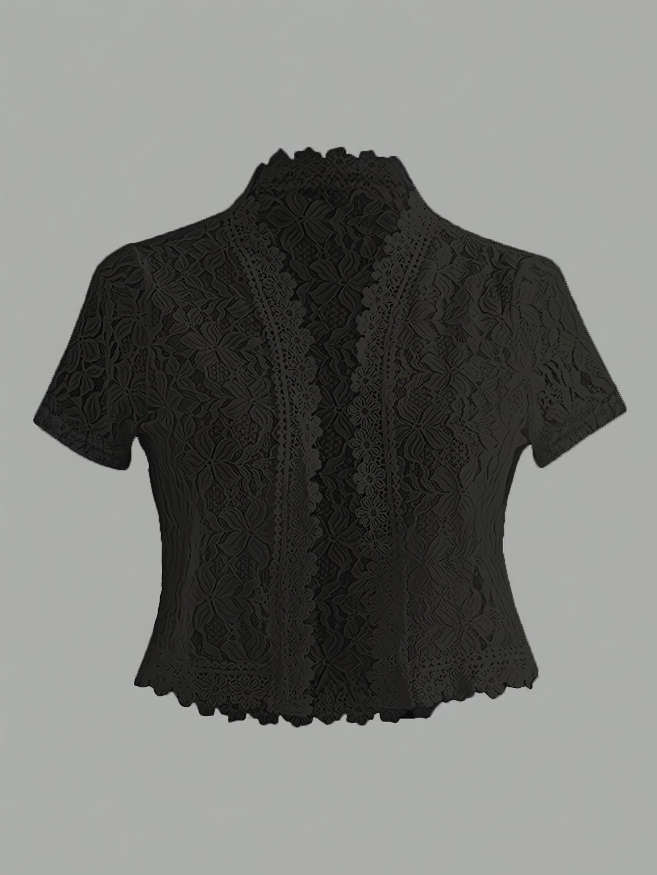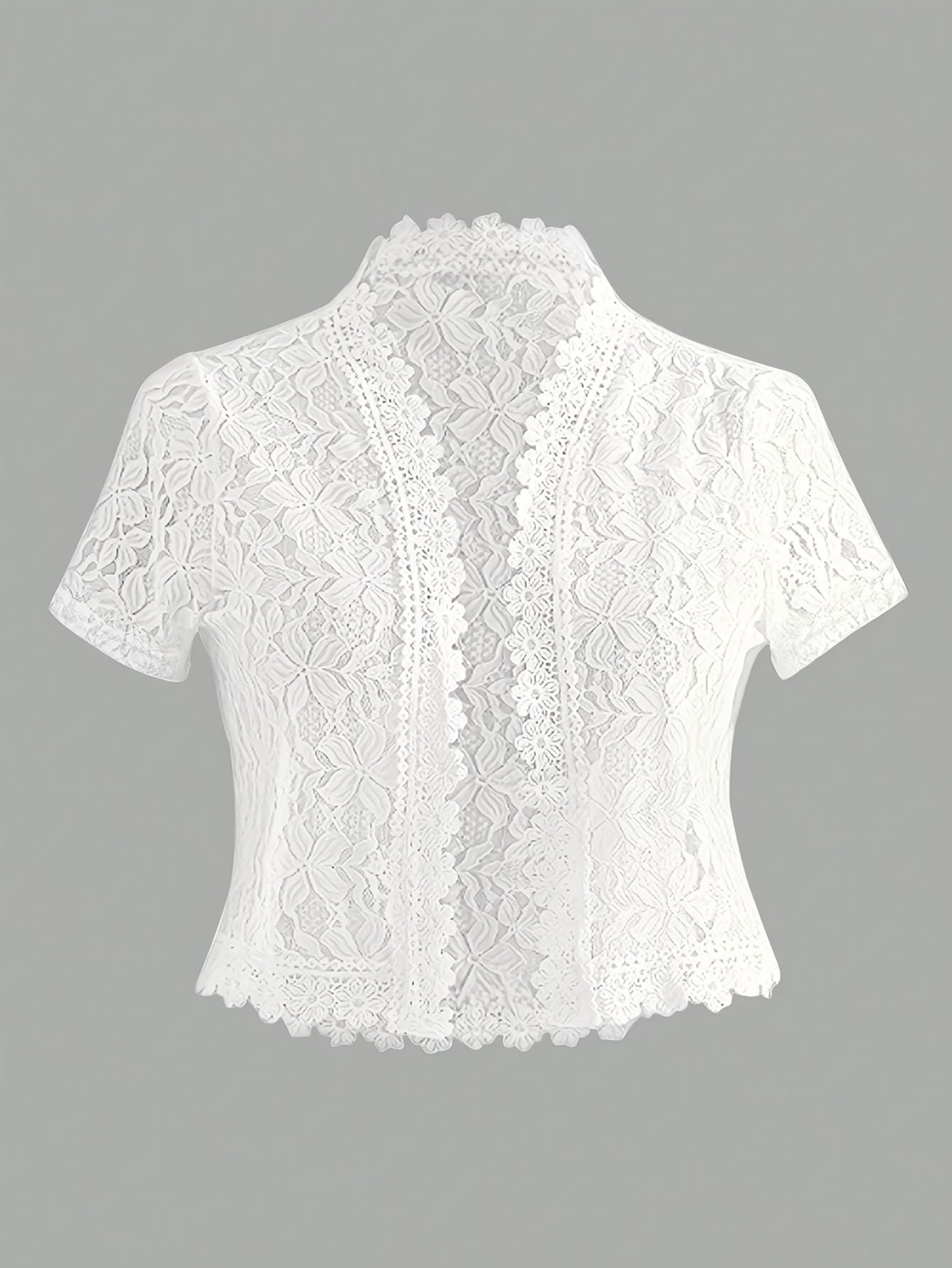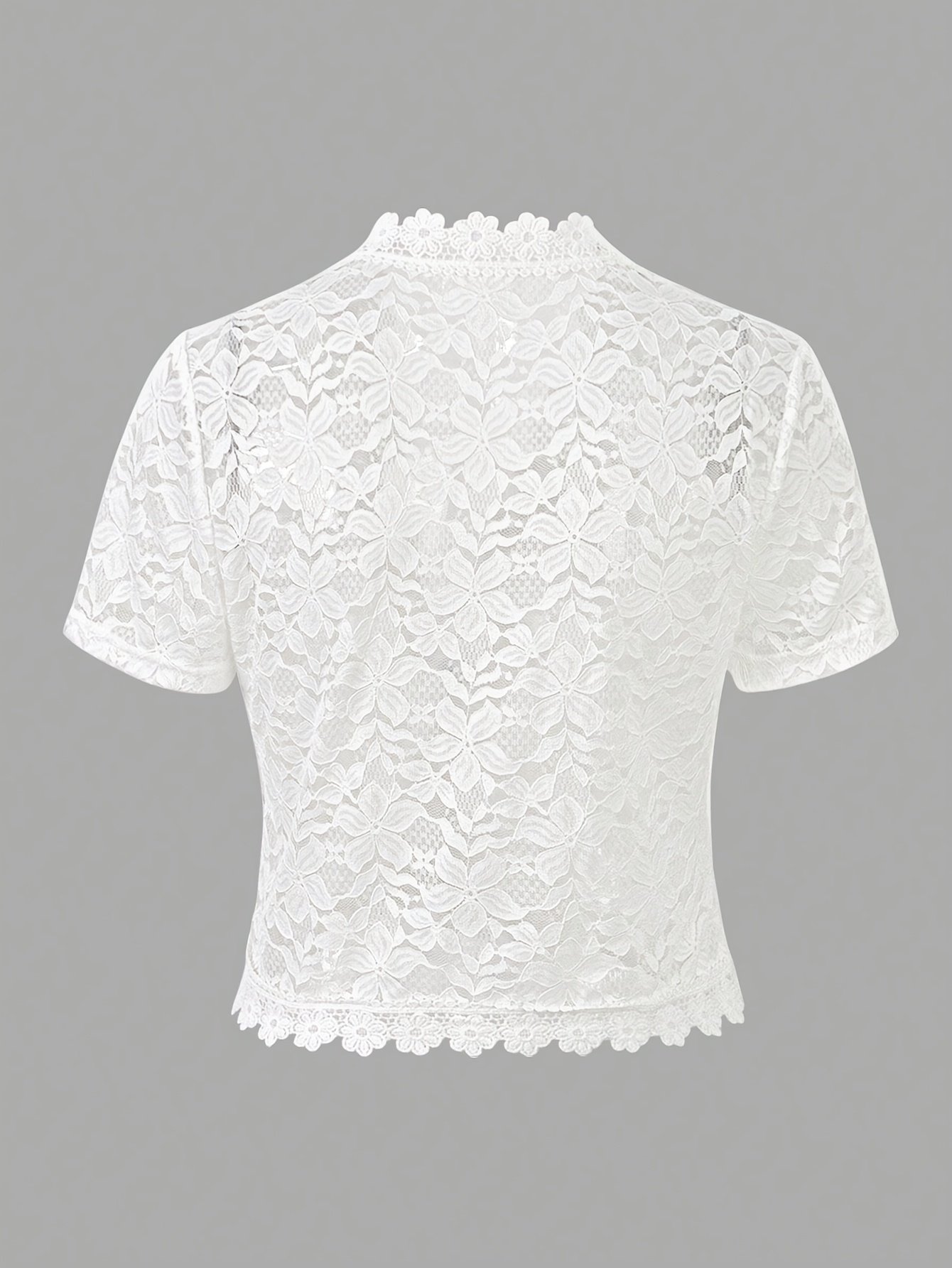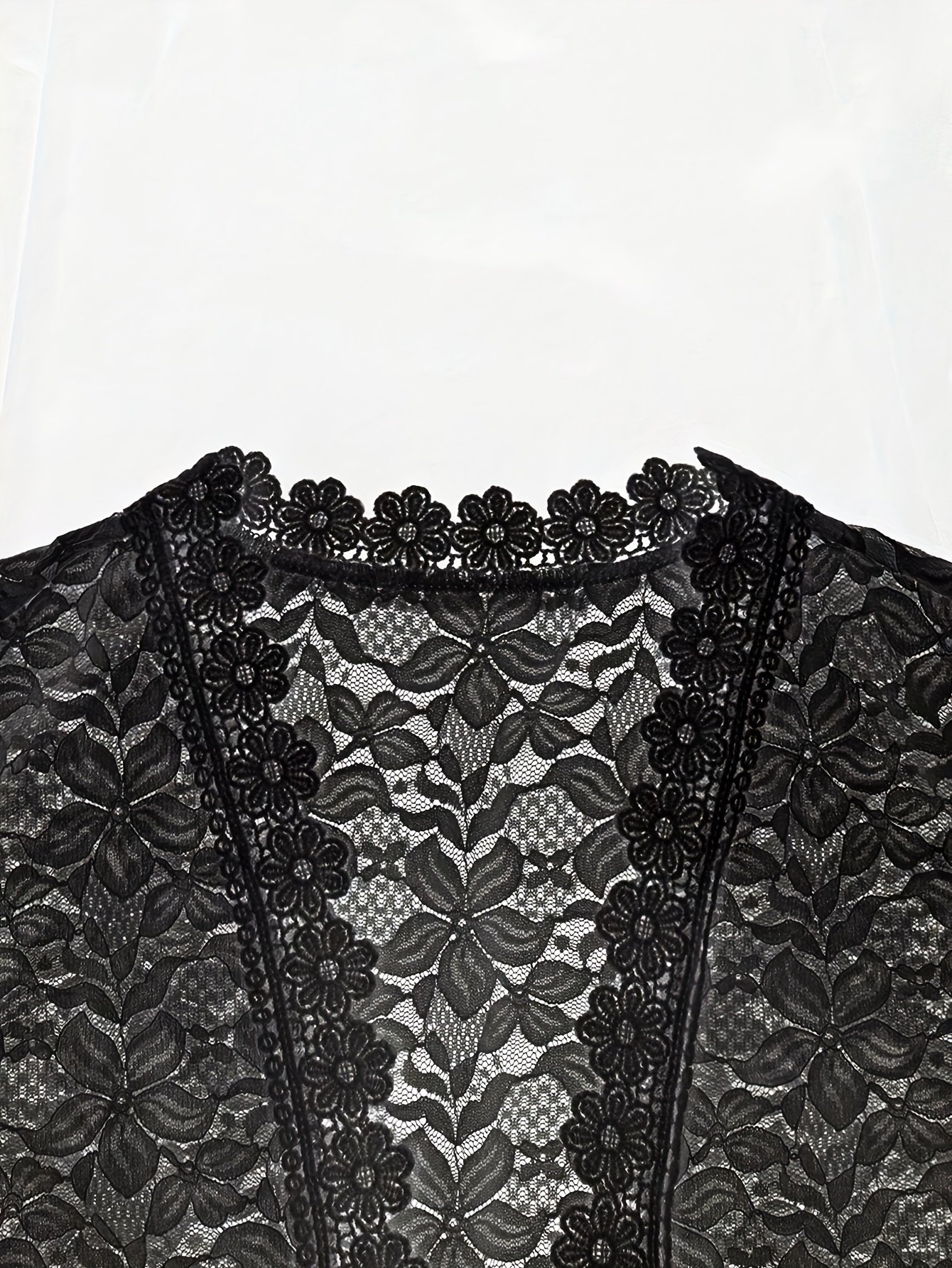 Summer Solid Color Lace Patchwork Casual Open Front Jacket For Holiday Party Clothes