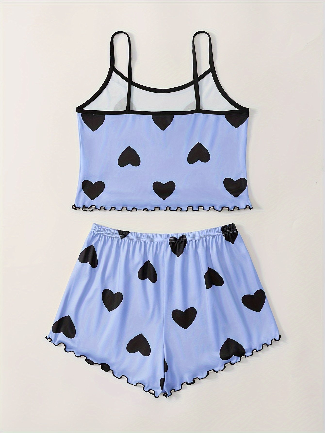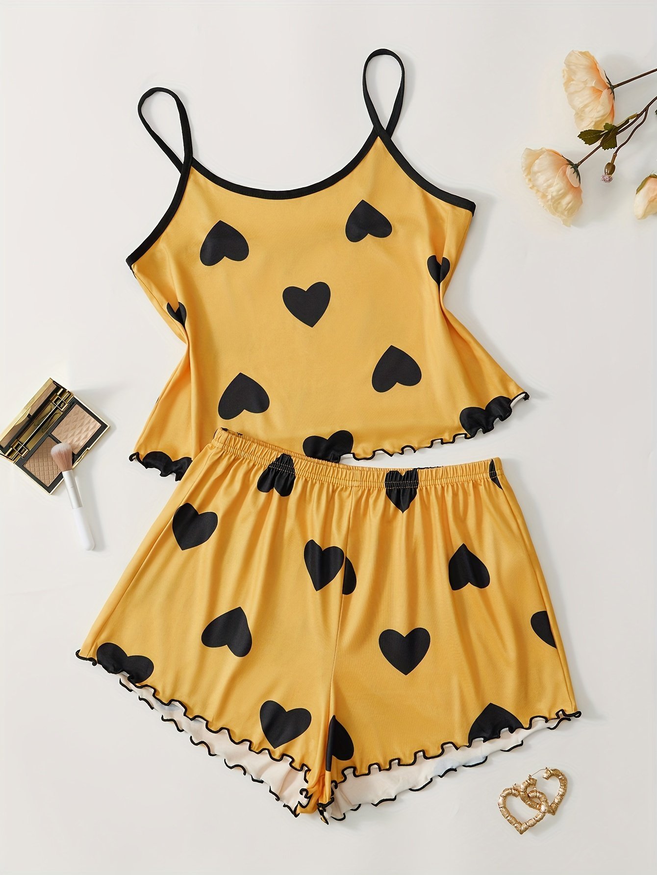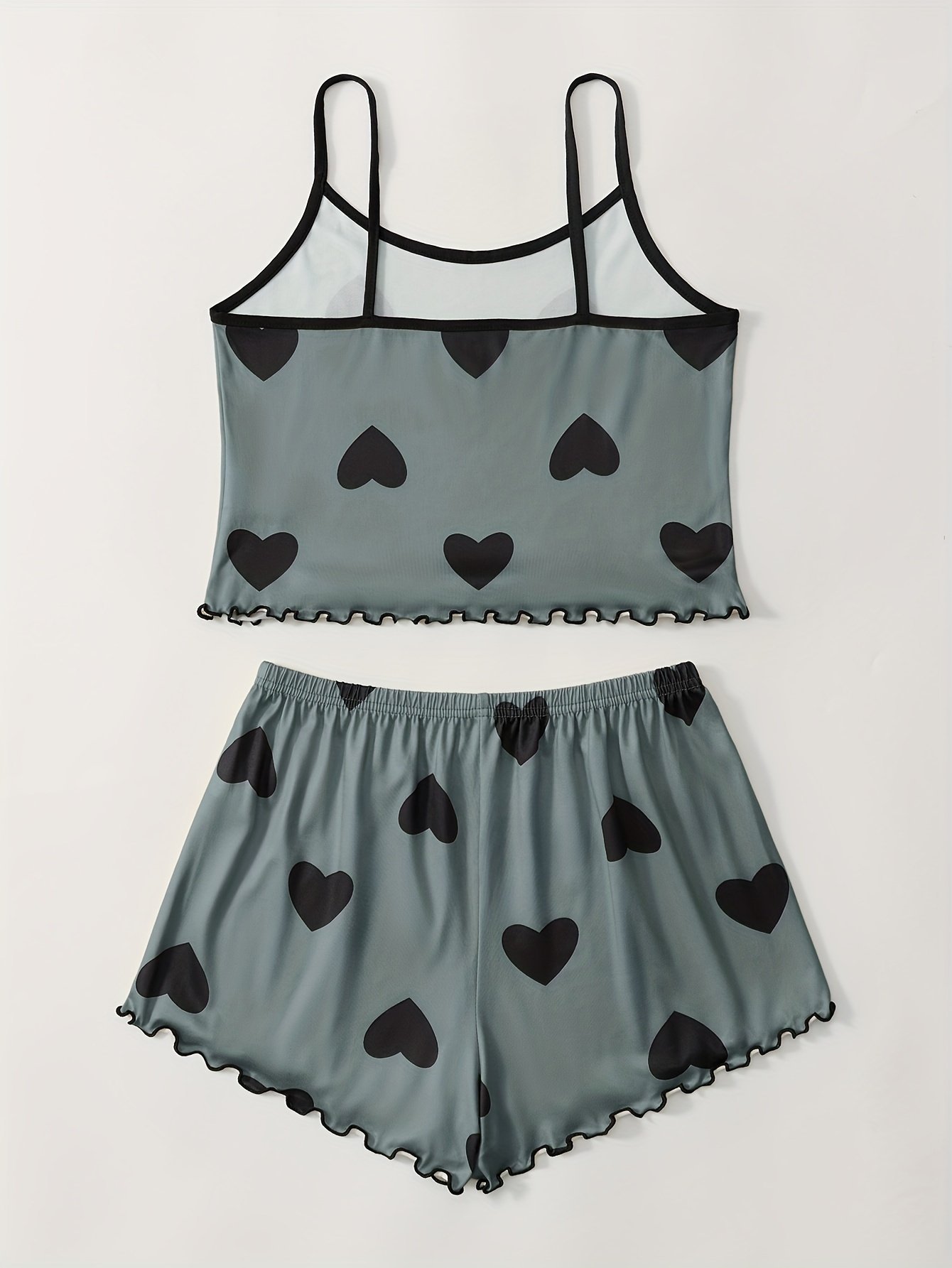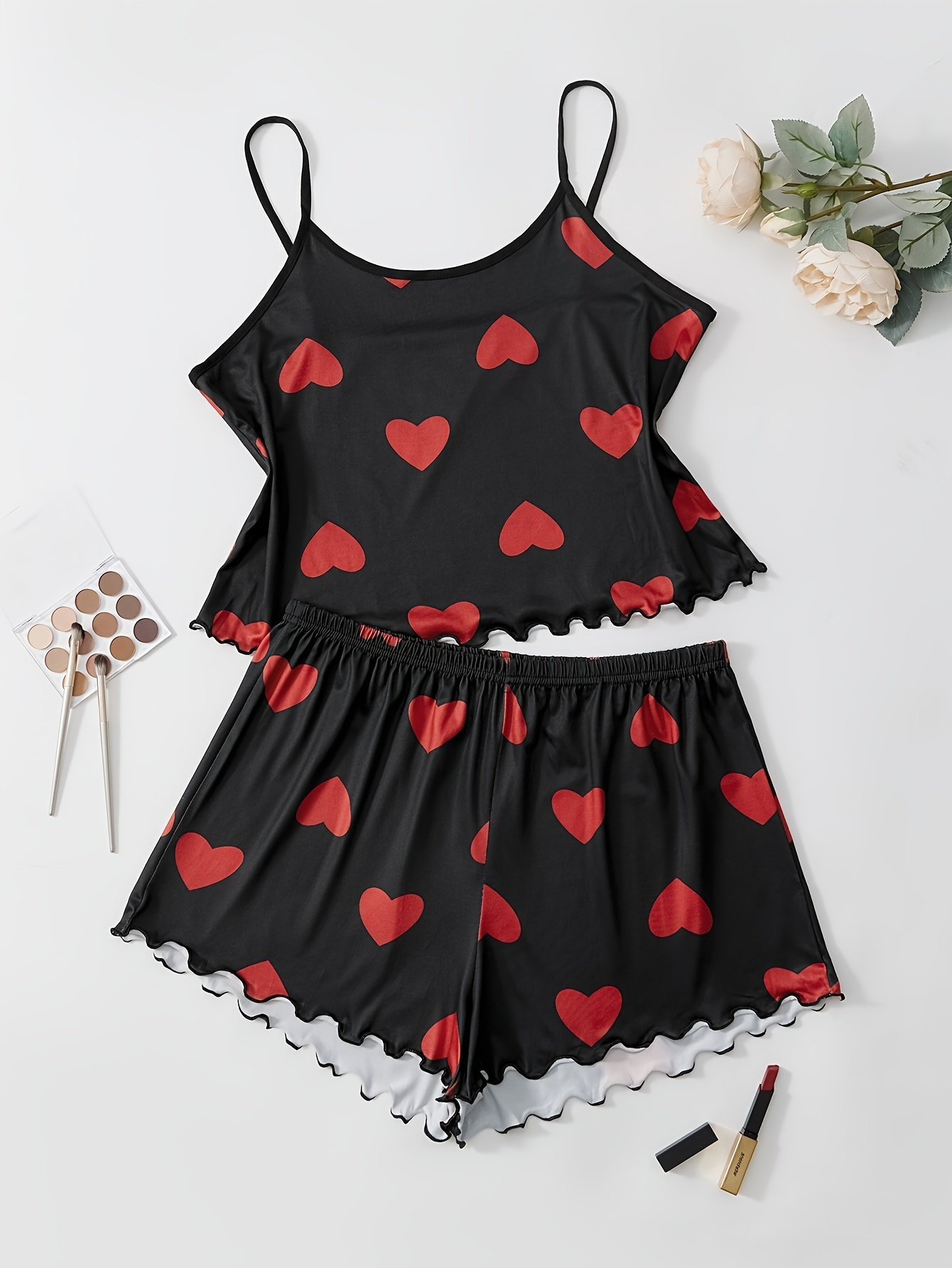 Summer Women’S Suspender Shorts Black Heart Print Pajama Set
