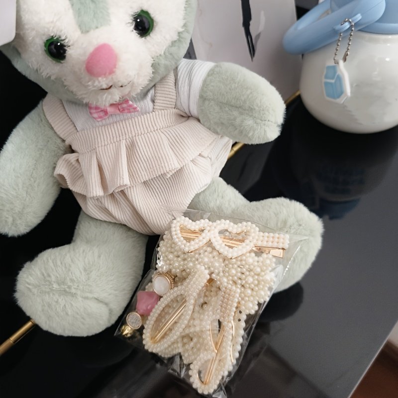 Sweet Style Pearl Hair Clips Set – Elegant Plastic Bow Tie Shaped Barrettes With Korean Fashion Elements, Solid Color Duckbill Grips For Women – Pack Of 10