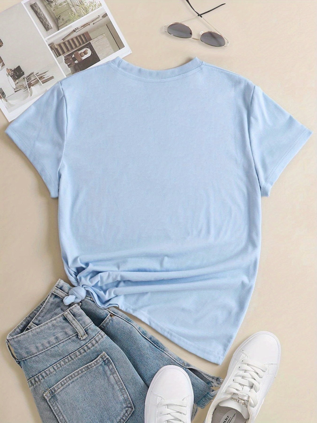 1Pc Stylish Letter Print Women’S Casual Sport Black Dark Grey White Apricot Brick Red Matcha Round Neck Pullover T-Shirt Polyester Spandex Comfortable Short Sleeve Top