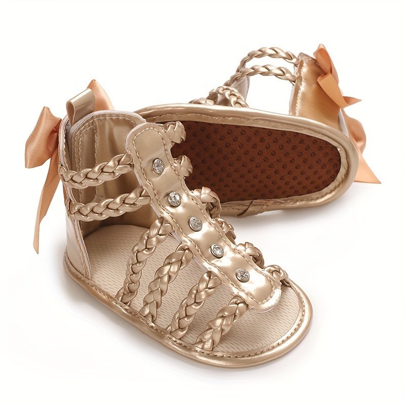 Trendy Cute Bowknot Decor Hollow Sandals For Baby Girls, Breathable Lightweight Walking Shoes For Summer