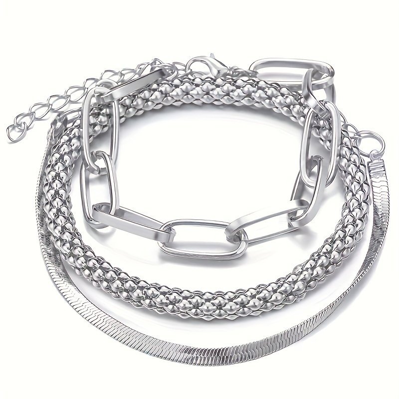 Trendy European And American Accessories: Hot-Selling Multi-Layer Snake Bone Chain Bracelet Set, Creative Vintage 3-Piece Golden Chain Bracelet For Women.
