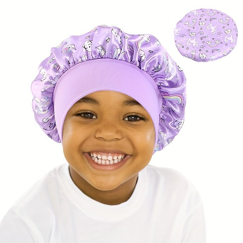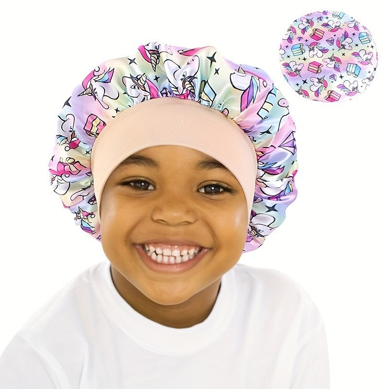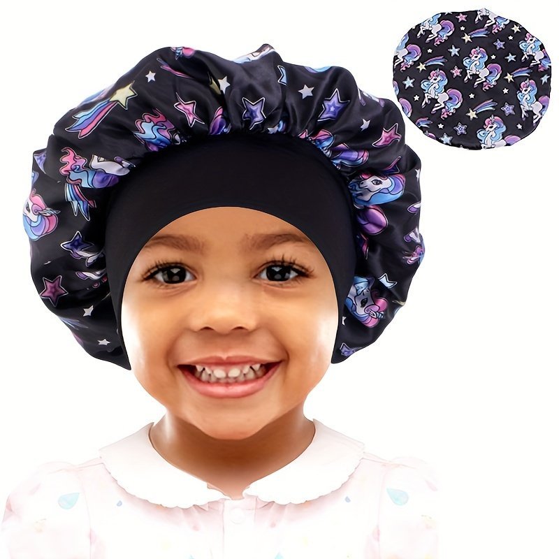 Unicorn Cartoon Printed Children’S Satin Sleep Cap Baby Hair Care Cap