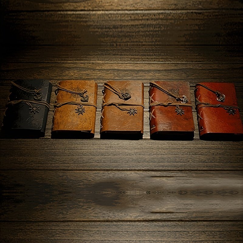 Vintage Pirate-Themed Spiral Ring Binder Journal – Faux Leather Cover With Compass & Steering Wheel Design, Nautical Travel Diary With Lanyard Closure