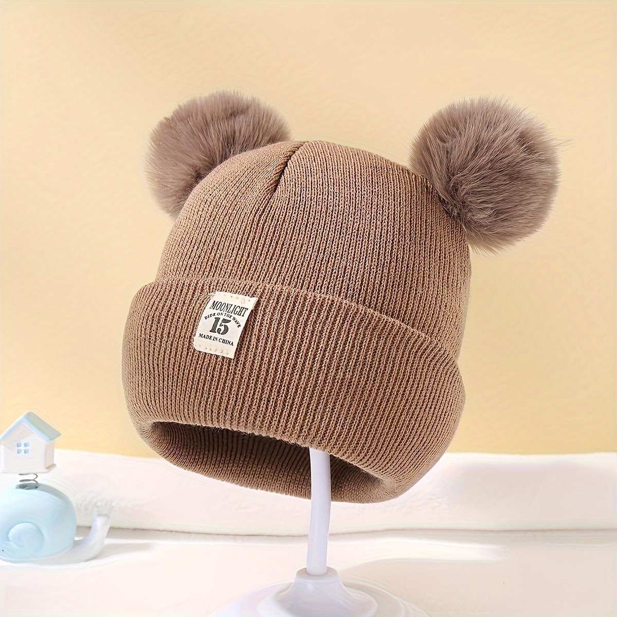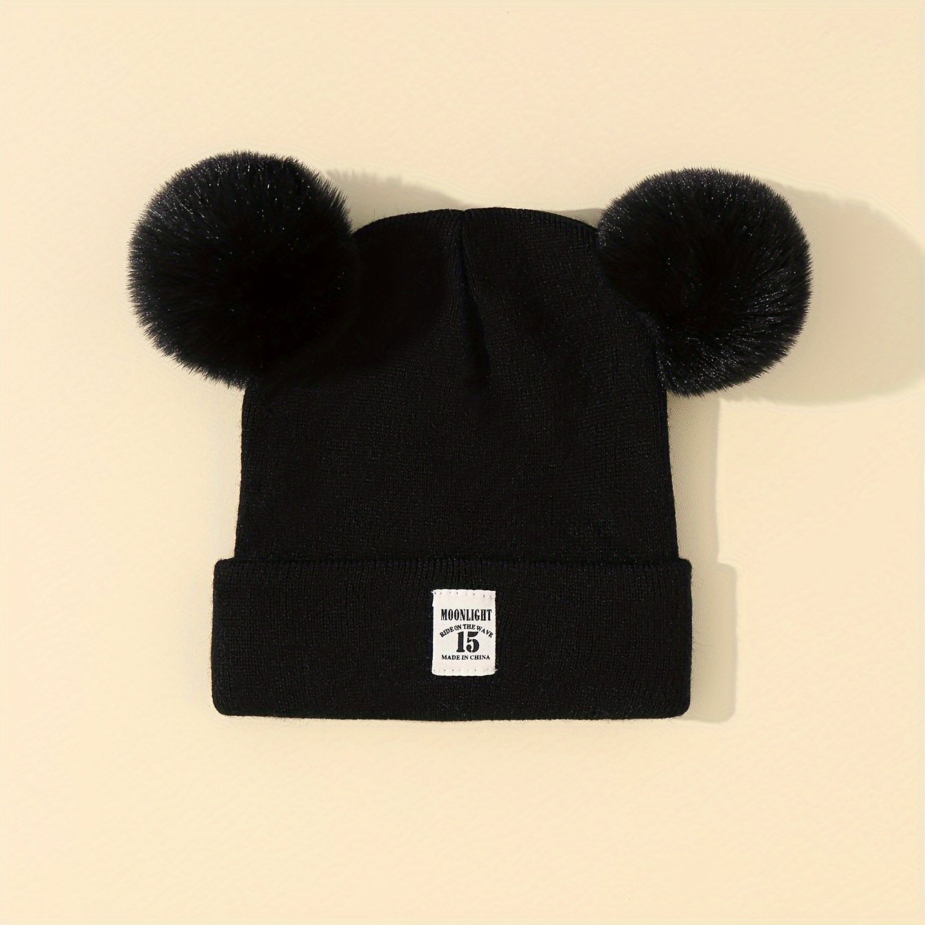 Winter Knitted Hat With Adorable Bear Ears & Pom-Pom – Stretchy Breathable Warm Beanie For Girls & Boys, Christmas Gift, White, Winter Hat, Festive Babywear, Cartoonish Cozy Style