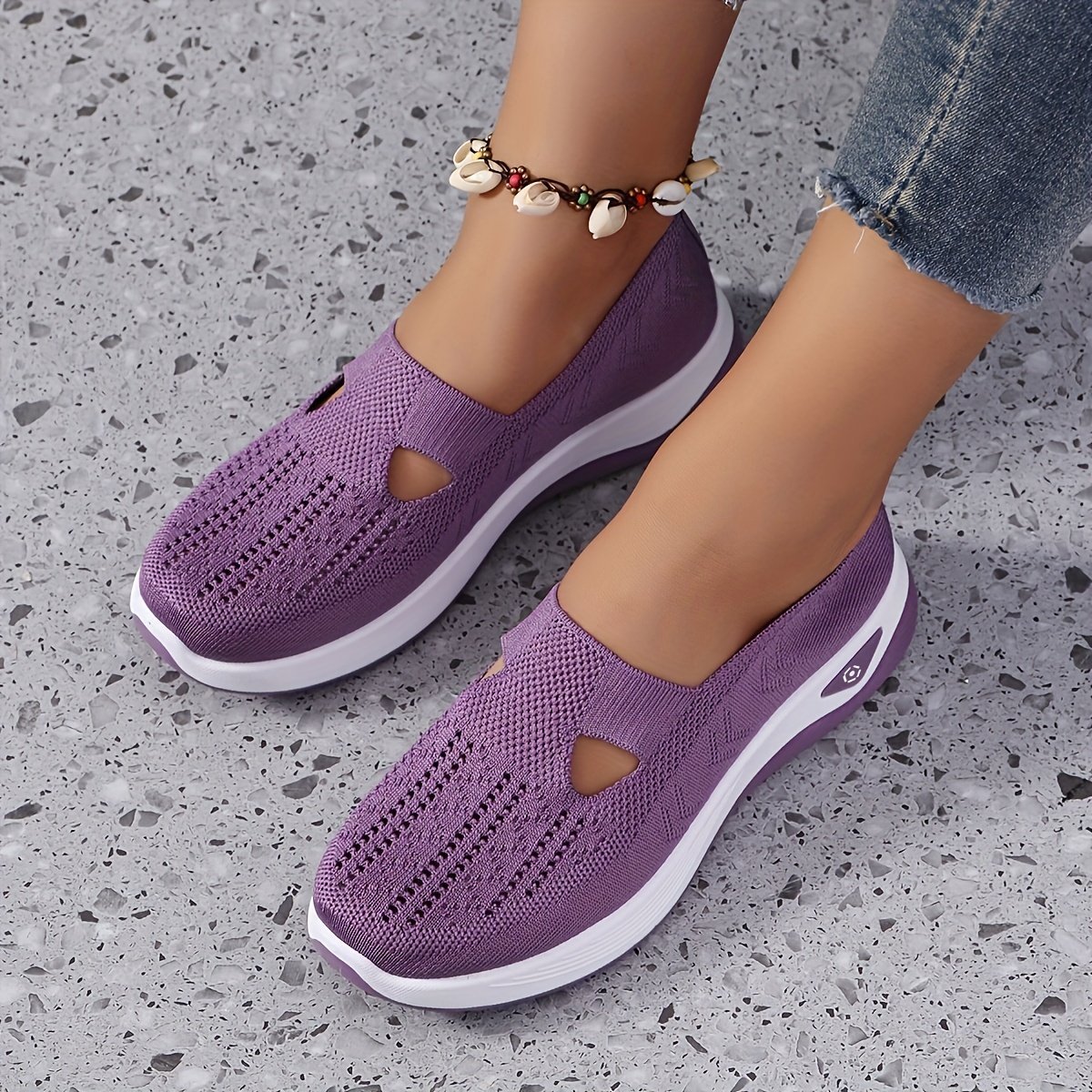 Women’S Breathable Knit Slip-On Sneakers – Light Blue Casual Low-Top Shoes With Cushioned Pvc Sole, All-Season Comfort For Casual Attire, Ladies Sneakers, Stylish Slipons, Comfortable Fit