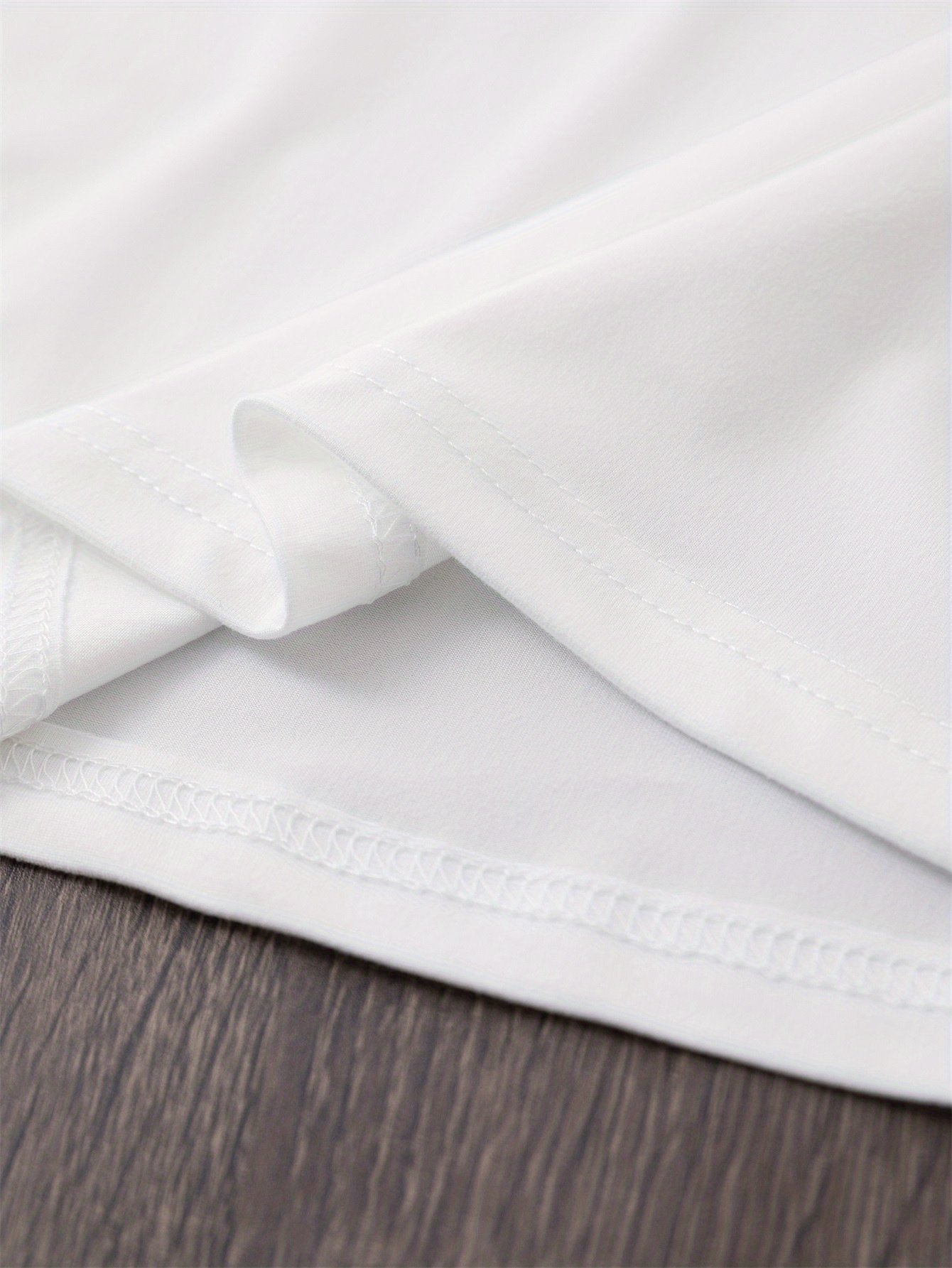 Women’S Casual Crew Neck T-Shirt With Geometric Paris Eiffel Tower Print, Short Sleeve Knit Fabric Top, 100% Polyester, All Seasons – White