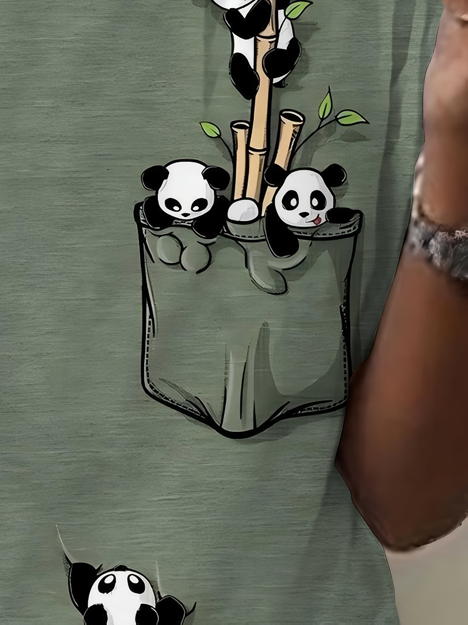 Women’S Casual Elegant Panda Print Crew Neck T-Shirt – Short Sleeve Bamboo Graphic Tee, Soft Breathable Fabric, Machine Washable, Spring Summer Top, Panda Gifts, Casual Attire Shirt, Durable Print Shirt