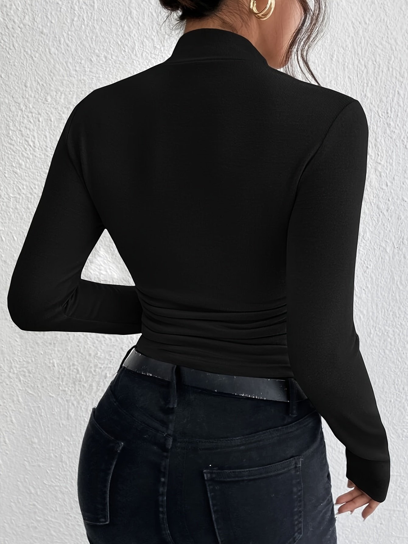 Women’S Elegant High-Neck Long Sleeve Turtleneck Top – Stretchy Slim Fit Black Shirt For Layering, All-Season Versatile Basic Wardrobe Staple