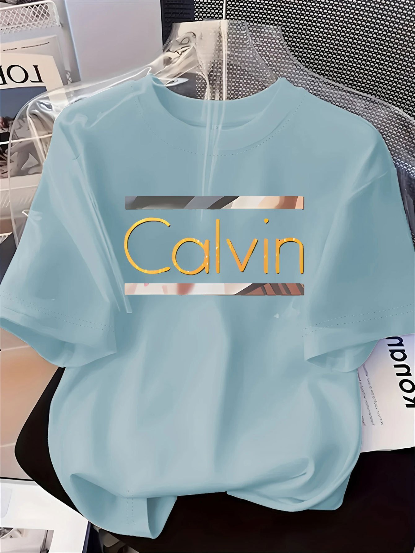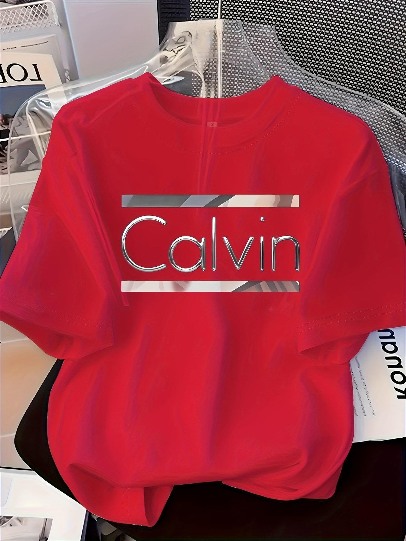 Be the first to review “Women’S Elegant Round Neck Short-Sleeve T-Shirt – Vibrant Red With White Calvin Monogram Print, Soft Fabric, Casual Versatile Top For Spring & Summer, Machine Washable, Casual Attire, Stylish Letter Print, Comfortable Fit”