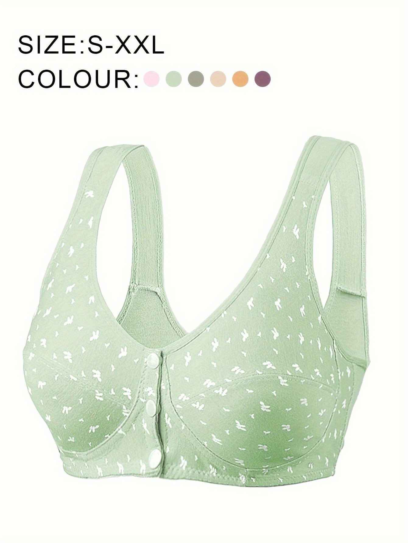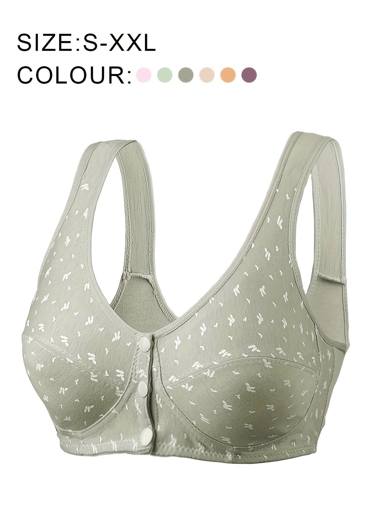 Women’S Front Closure Wireless Bralette – Breathable & Comfortable, Random Print Design, No Padding, Adjustable Straps For Everyday Wear, Comfortable Undergarment, Sleek Modern Look, Smooth Texture Fabric
