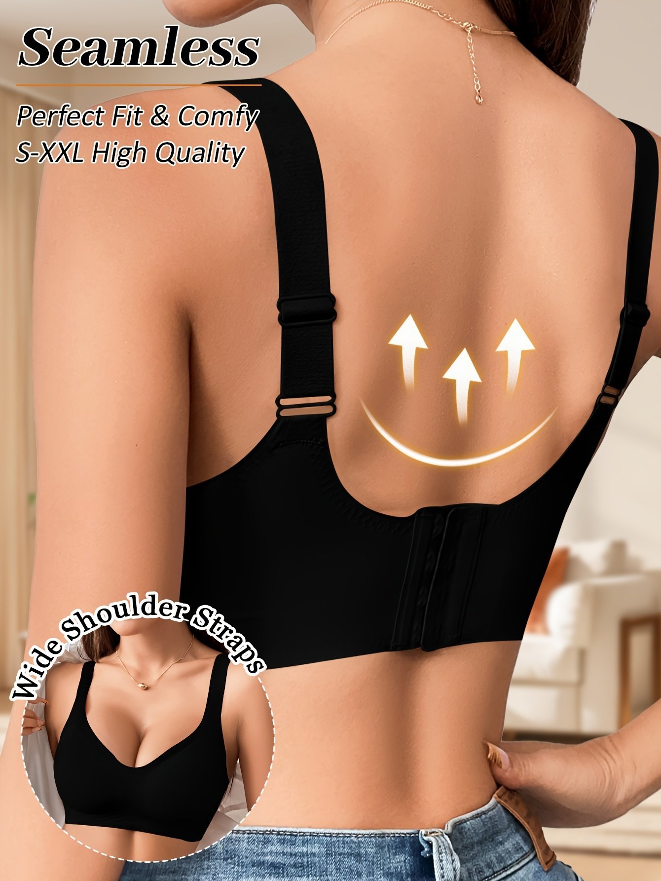 Women’S Full Coverage Wireless Bra, Polyamide 85% Elastane 15%, Knit Fabric, Solid Color, Removable Pads, Comfortable Everyday Basics