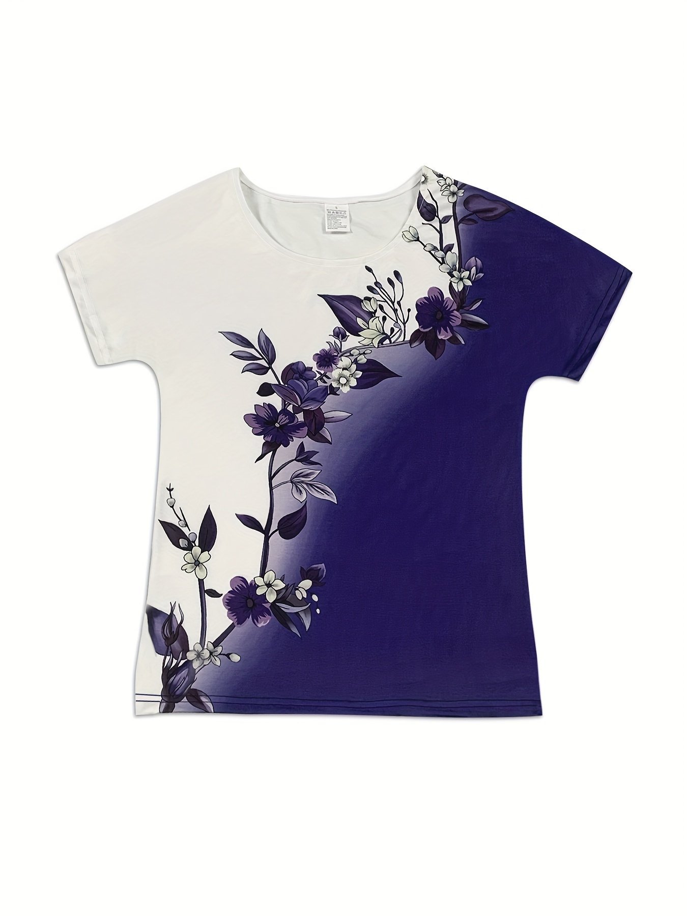 Women's Gradient Floral Print Round Neck T-Shirt - Casual Short Sleeve Top with Contrast Color Block Design, Medium Stretch Fabric, Machine Washable, All-Season Versatile Wear, Relaxed Fit Tee, Stretchable MaterialWomen's Gradient Floral Print Round Neck T-Shirt - Casual Short Sleeve Top with Contrast Color Block Design, Medium Stretch Fabric, Machine Washable, All-Season Versatile Wear, Relaxed Fit Tee, Stretchable MaterialWomen's Gradient Floral Print Round Neck T-Shirt - Casual Short Sleeve Top with Contrast Color Block Design, Medium Stretch Fabric, Machine Washable, All-Season Versatile Wear, Relaxed Fit Tee, Stretchable Material