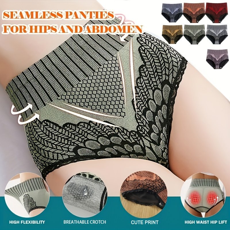 Women’S High Waist Seamless Panties With Hip Lift – Breathable Lace Trim Briefs For Postpartum Recovery, Retro Striped Tummy Control Underwear, Tight-Fitting Body Shaper In Black/Grey/Navy, Postnatal Underwear | Vintage Style Lingerie | Smooth Texture Fabric