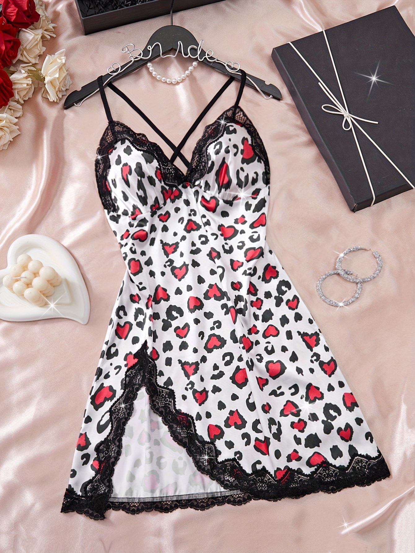 Women’S Leopard Print Satin Nightgown – Sexy V-Neck, Asymmetrical Hem With Tie Detail, Sleeveless Sleepwear For Spring/Summer/Fall, Adult, Leopard Print Nightgown