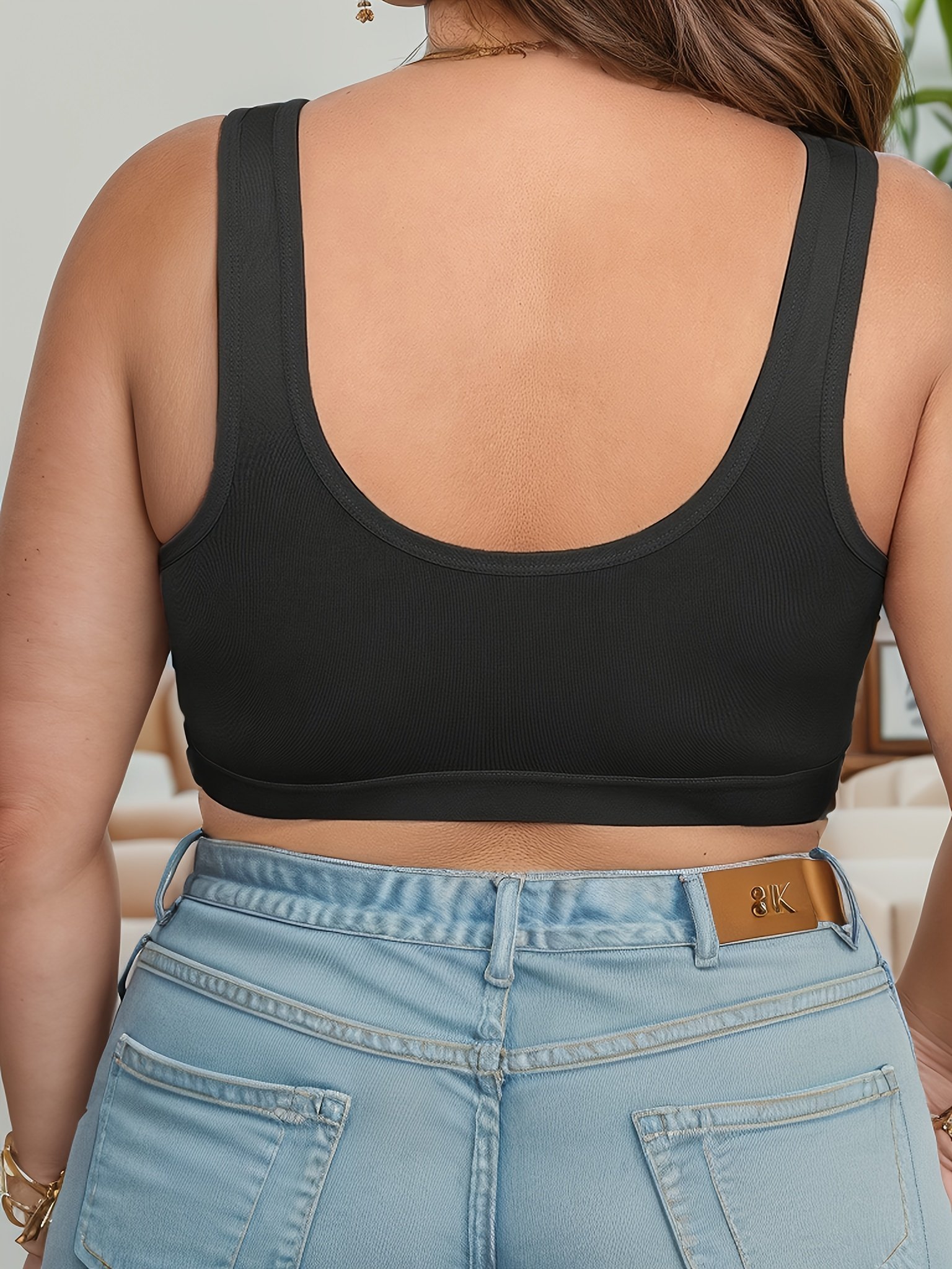 Women’S Plus Elegant Bra, Plus Size Solid Front Closure Full Cover Non Padded Bralette