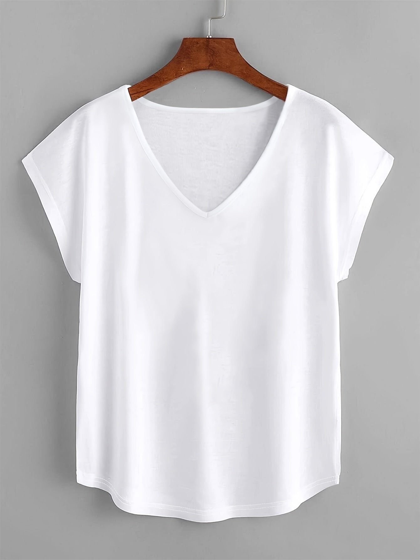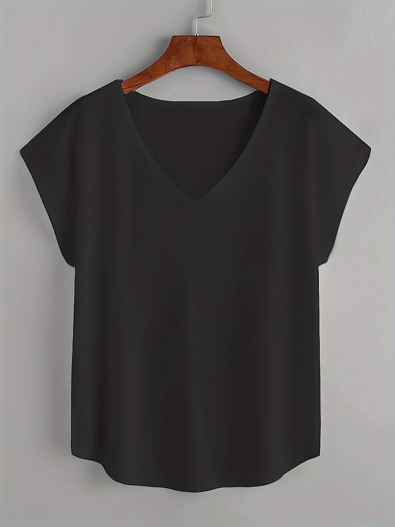 Women’S Plus Size Beige Batwing Sleeve V-Neck T-Shirt – Loose Fit, Elegant Pullover With Slight Stretch Fabric, All-Season Top, Comfortable Clothing | Minimalist Style | Glossy Finish, Plus Size Shirts