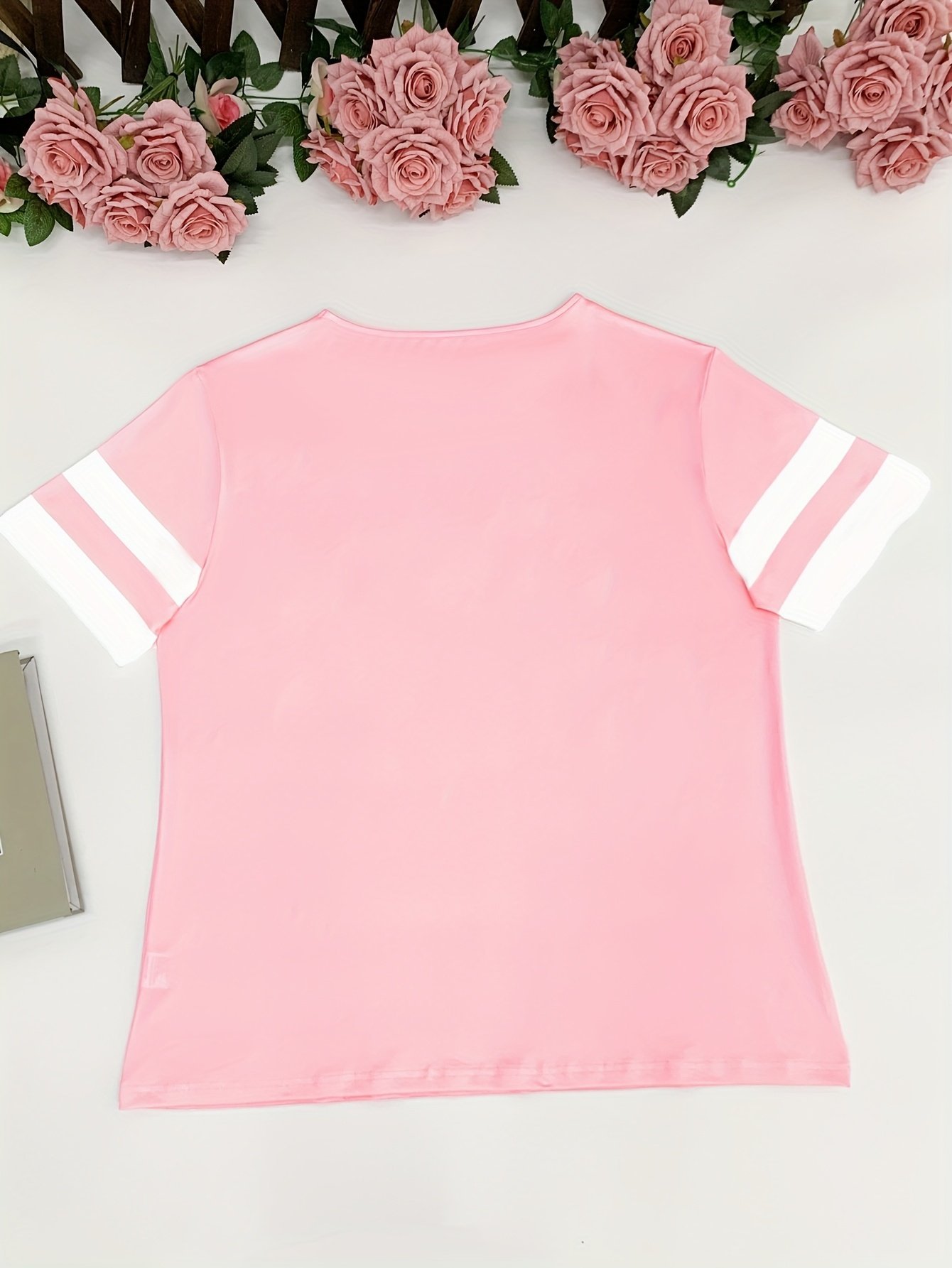 Women’S Plus Size Casual Short Sleeve T-Shirt With Elegant Heart Design – Soft, Comfortable Pullover For Spring/Summer/Fall, Plus Size Blouses