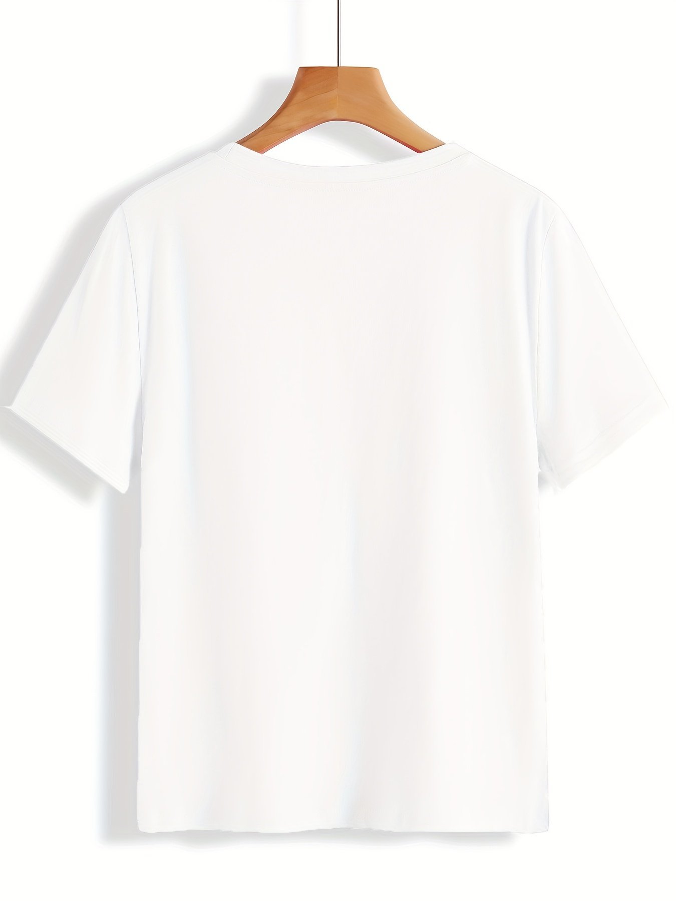 Women’S Plus Size Casual V-Neck T-Shirt, Polyester 95.0% Spandex 5.0%, Solid Color Knit Fabric, Retro Vacation Style Short Sleeve Tee For Spring/Summer, Ladies T Shirts