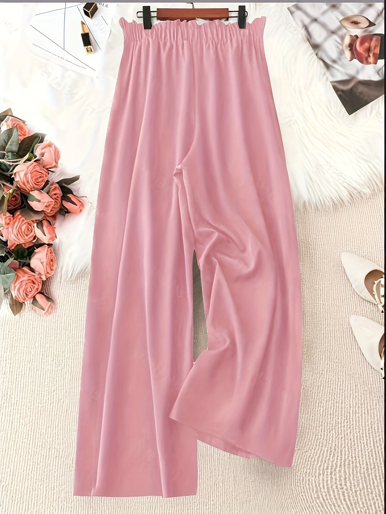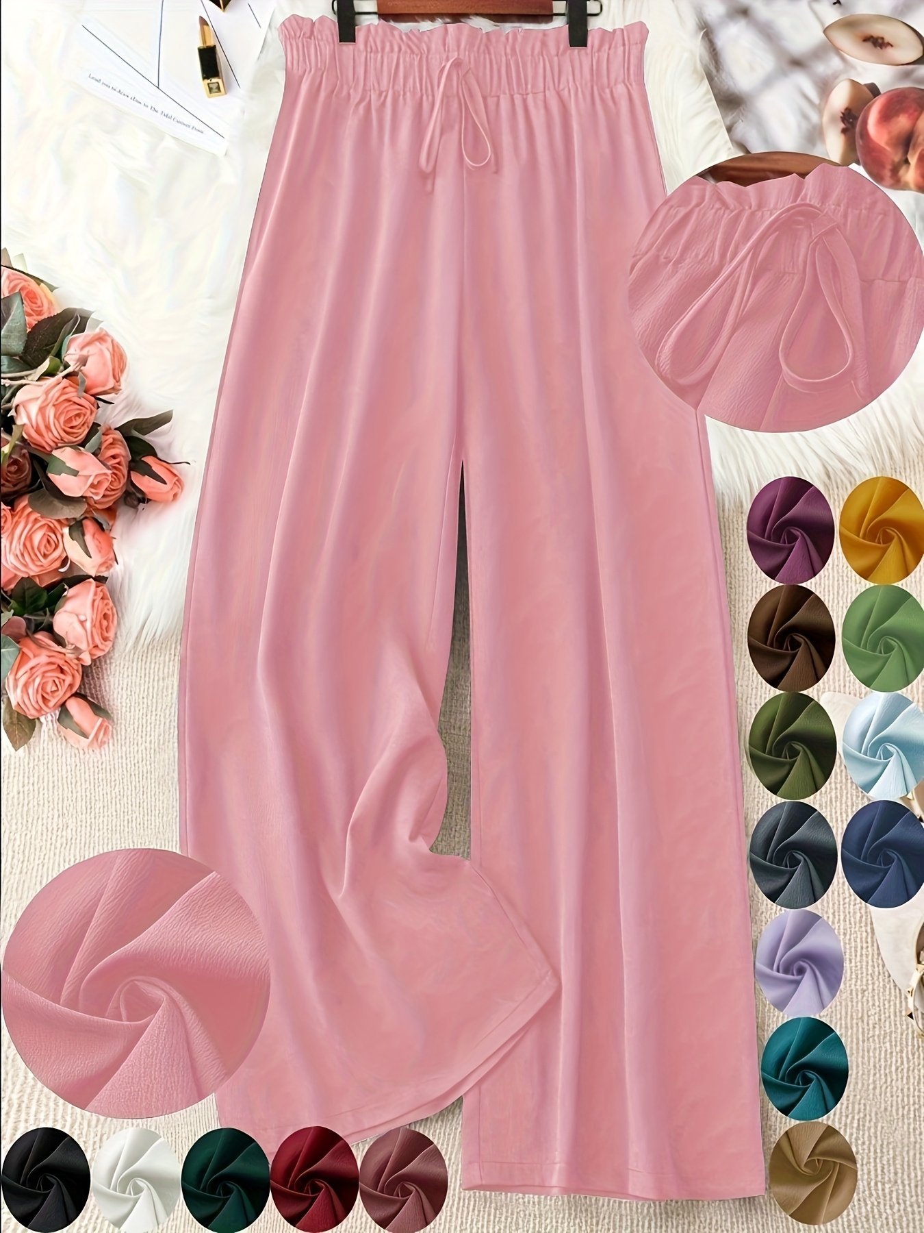 Women’S Plus Size Green Wide-Leg Pants – Non-Stretch, Straight Leg, Spring/Summer Fashion, Drawstring Waist, Casual Wear, Casual Wear Pants|Wide Leg Fashion|Drawstring Waistband, Plus Size Pants
