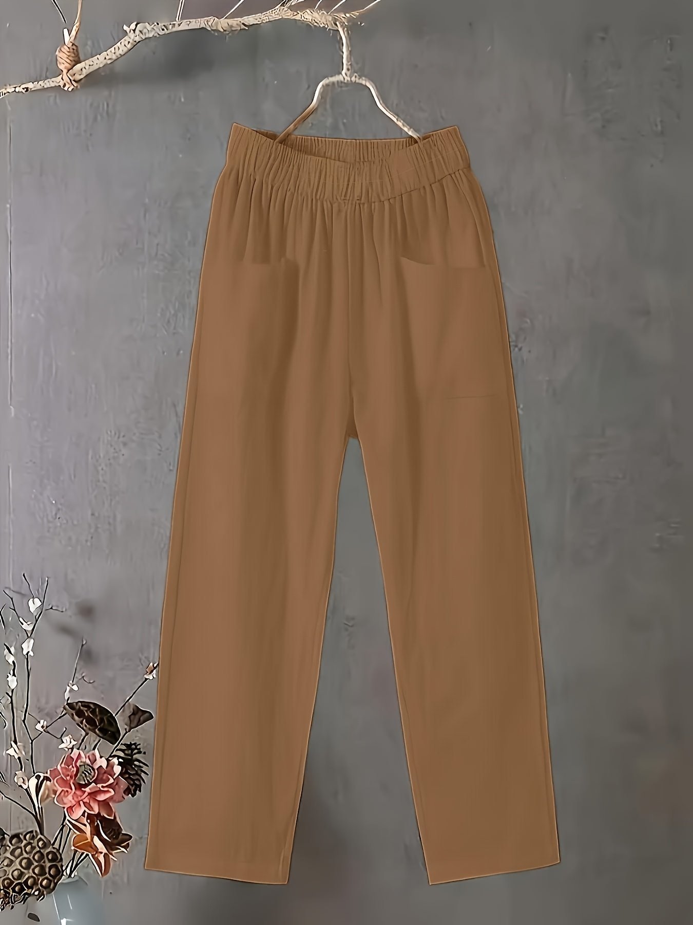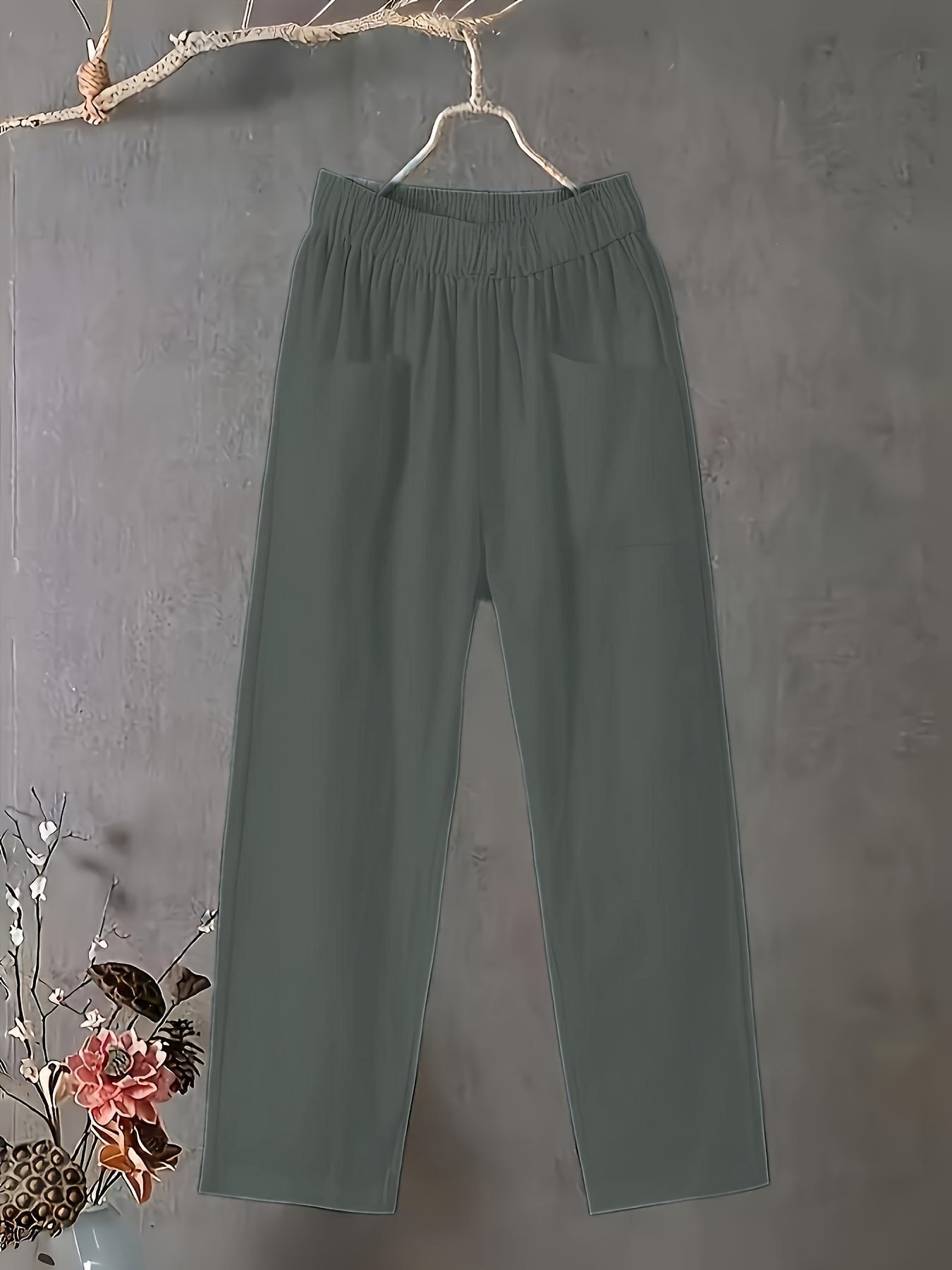 Women’S Plus Size Lightweight Straight-Leg Pants – Casual White Harem Style, Elastic Waistband, Polyester, Machine Washable For Spring/Summer/Fall