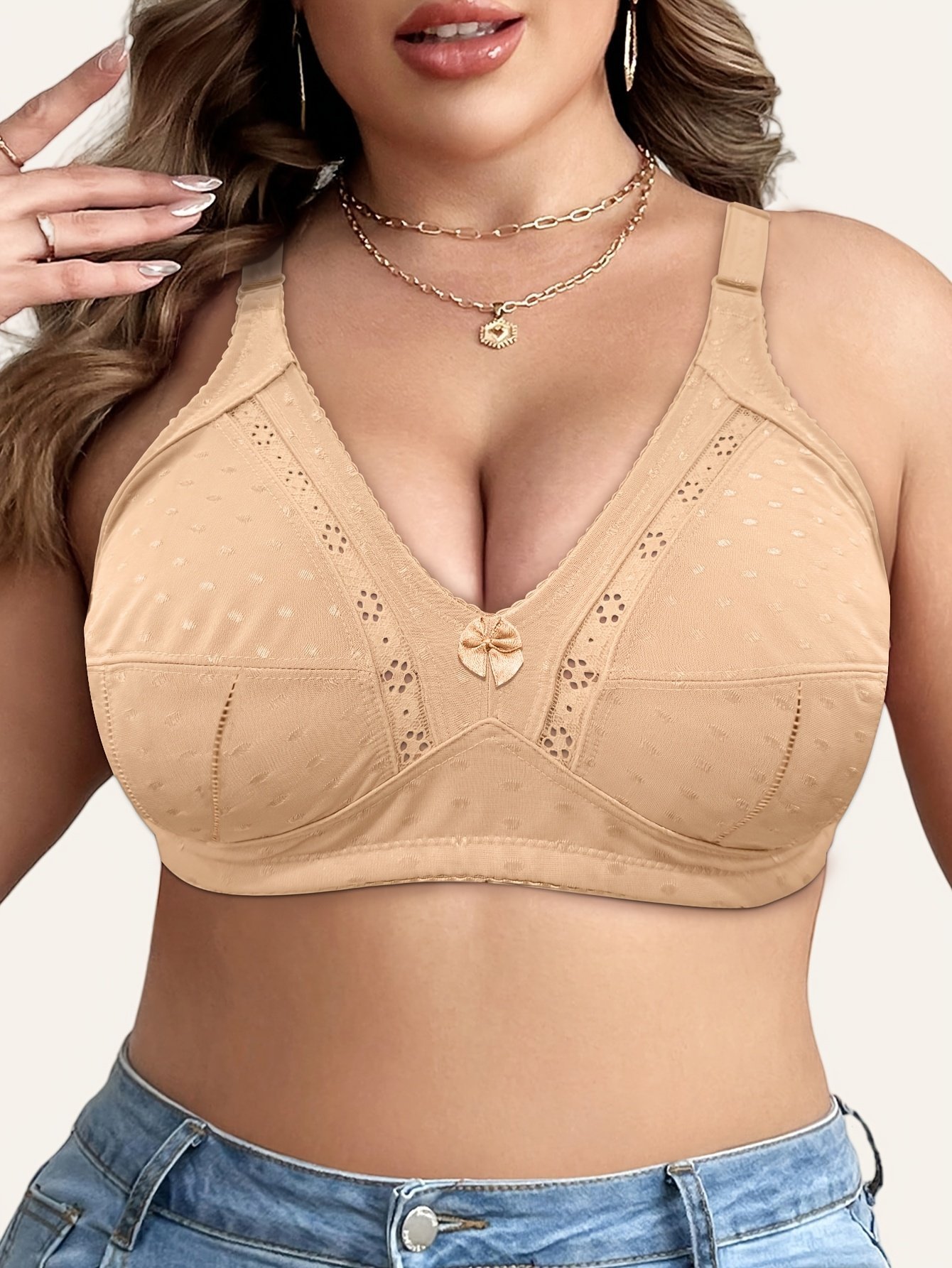 Women’S Plus Size Sexy Wireless Bra With Bowknot, 95% Nylon 5% Elastane Knit Fabric, Breathable Full Coverage Bralette For All Seasons