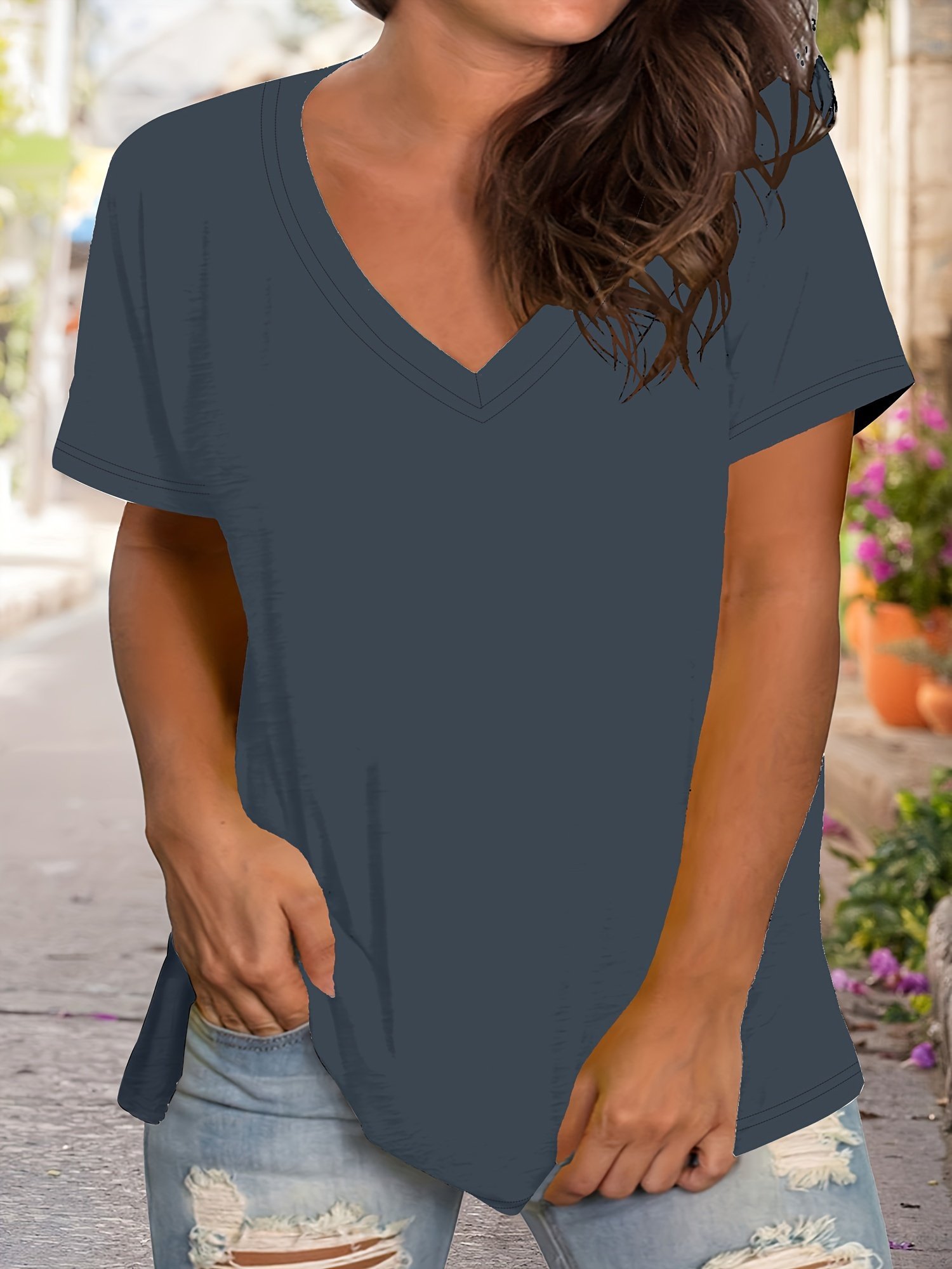Women’S Plus Size V-Neck Short Sleeve T-Shirt – Soft Breathable Casual Top, Relaxed Fit Solid Color, Machine Washable All-Season Versatile Tee, Ladies T Shirts, Everyday Comfort Apparel, Vneck Tee, Comfortable Fabric, Durable Casualwear
