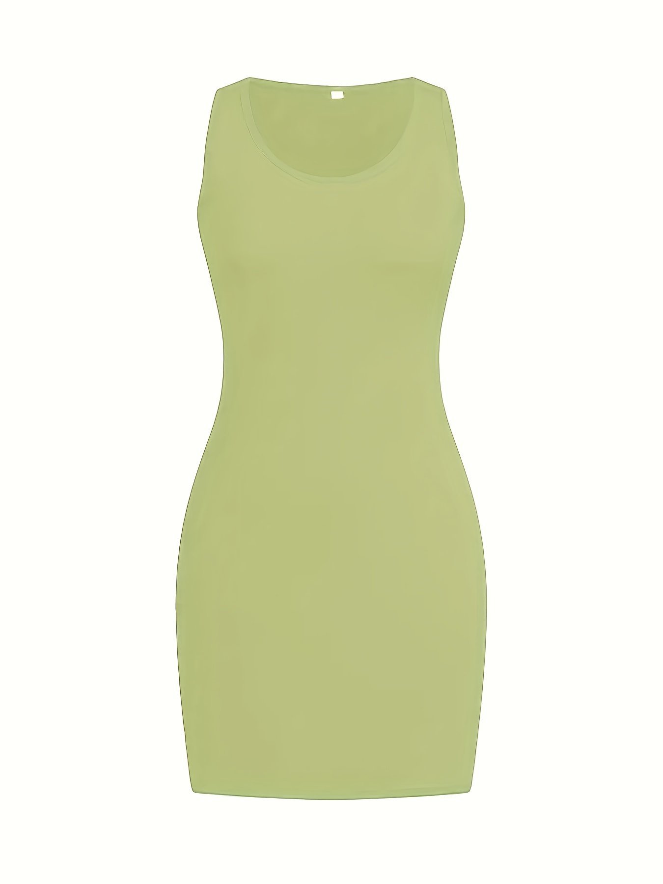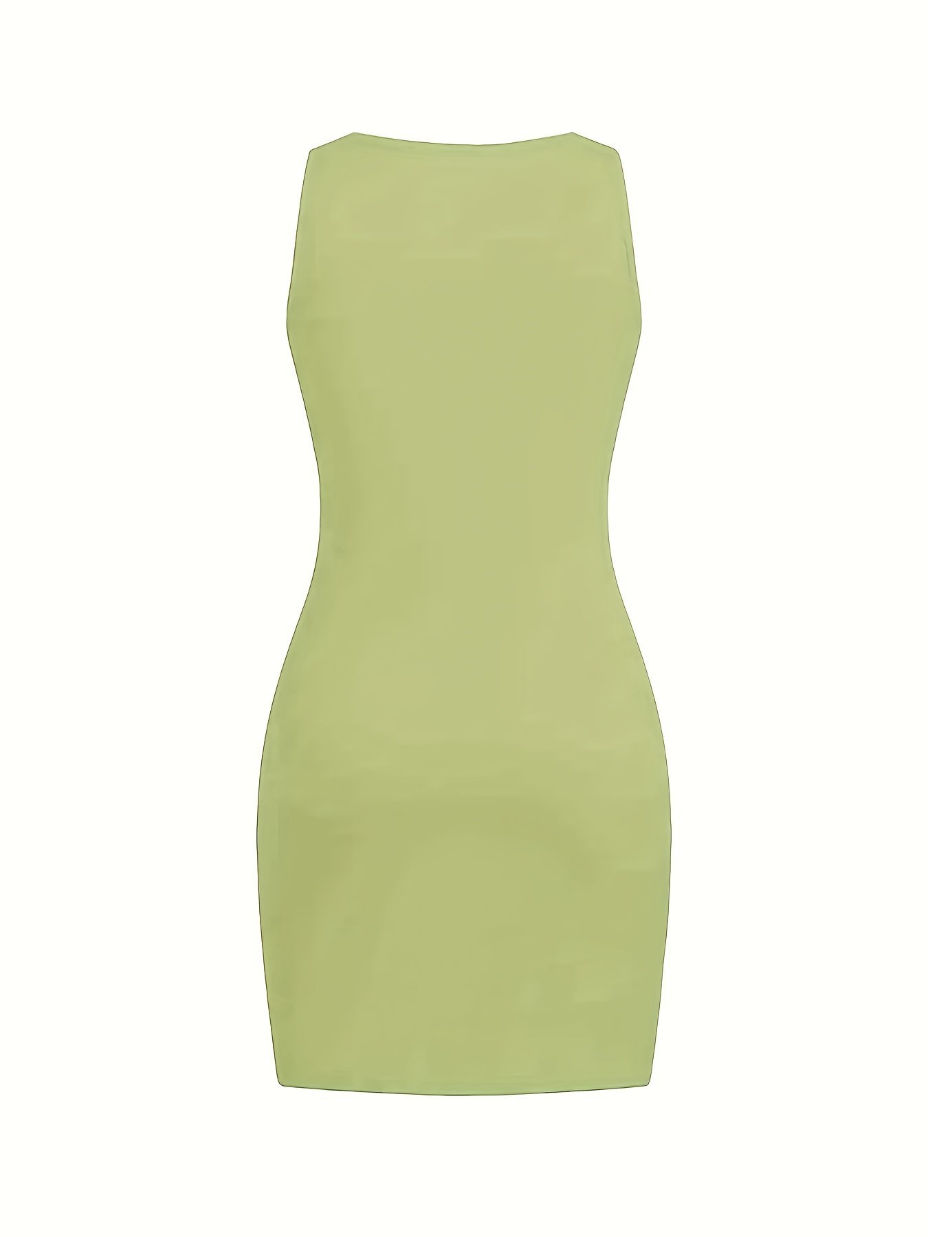 Women’S Slim-Fit Sleeveless Tank Dress – Solid Color Green, Ruched Detail, Knee-Length, Casual & Elegant For Beach, Vacation, Or Summer Outings, Beach Dresses, Vacation Attire, Ruched Texture, Nonpadding Design