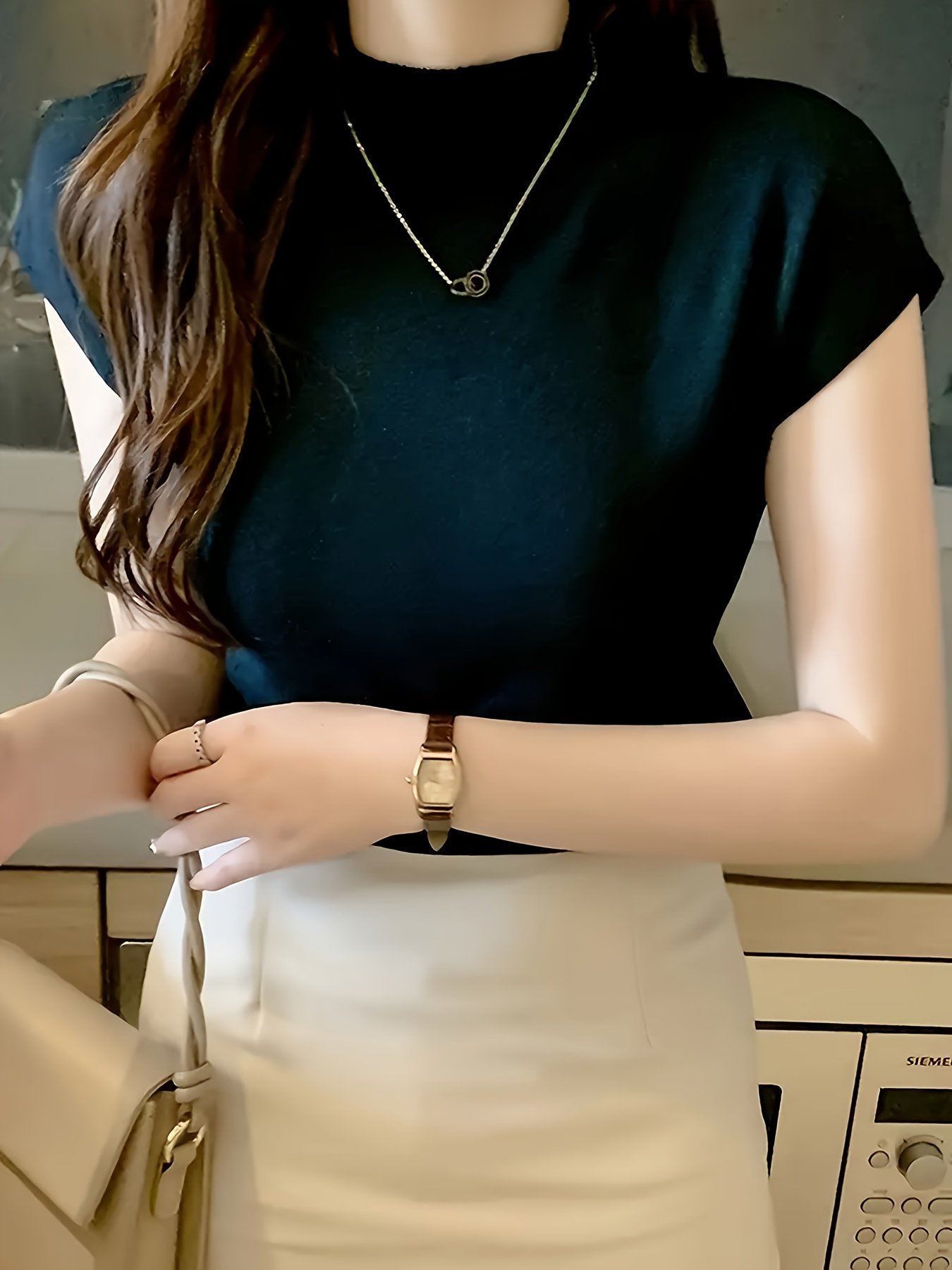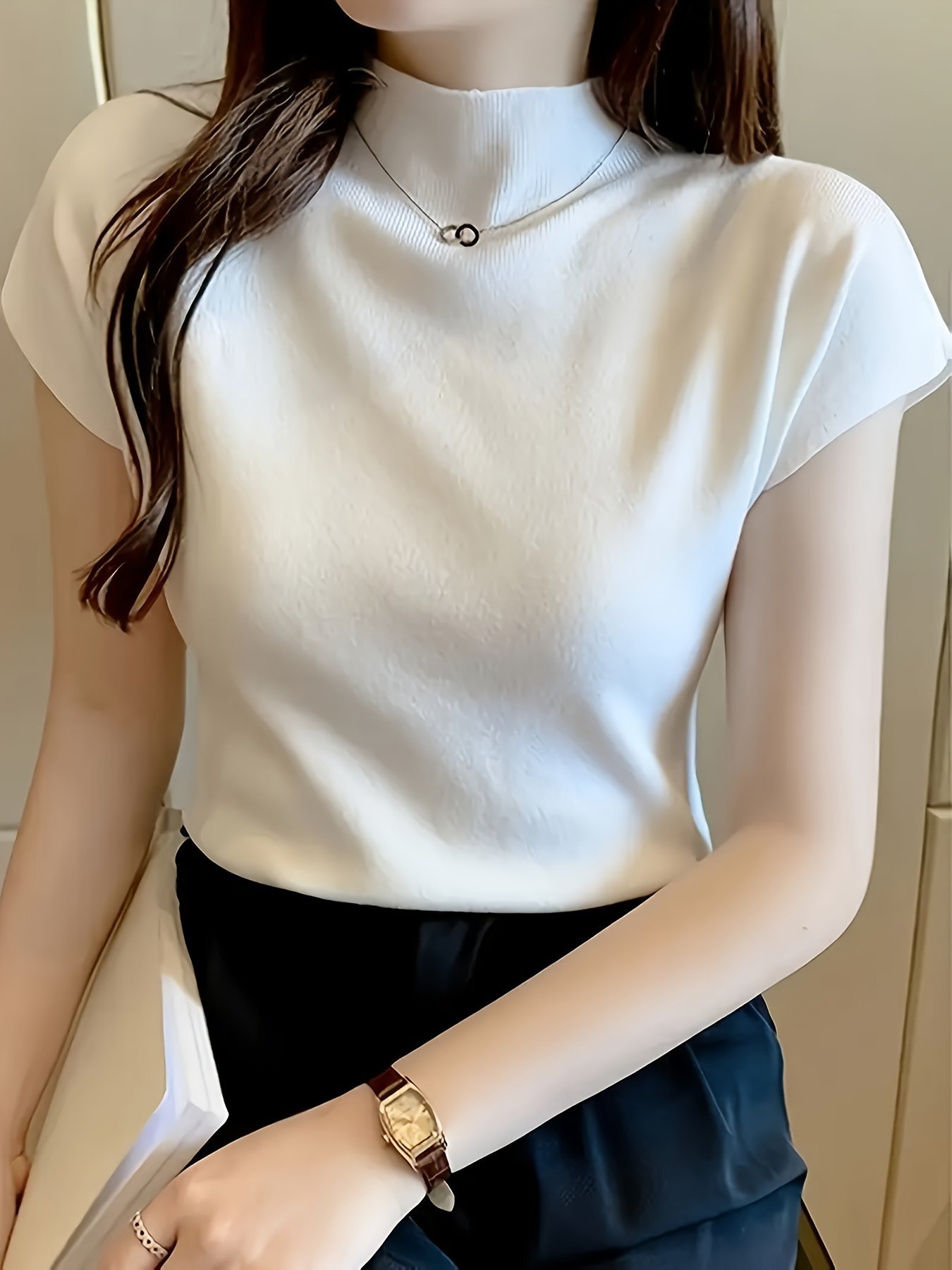 Women’S Stretchy Sleeveless Top – Elegant Round Neck Casual Shirt, Solid Color High Elasticity Blouse For Spring Summer Fall, Versatile For Casual Outings & Semi-Formal Events, Vacation Clothing, Simple Stylish Top, Comfortable Fit
