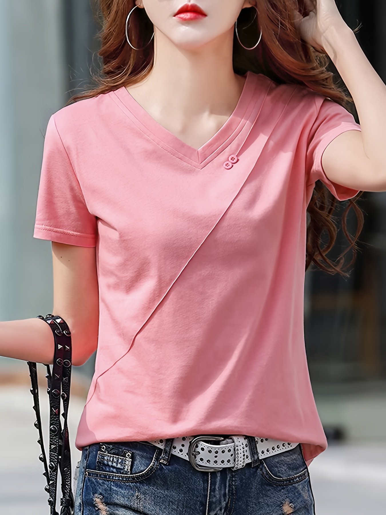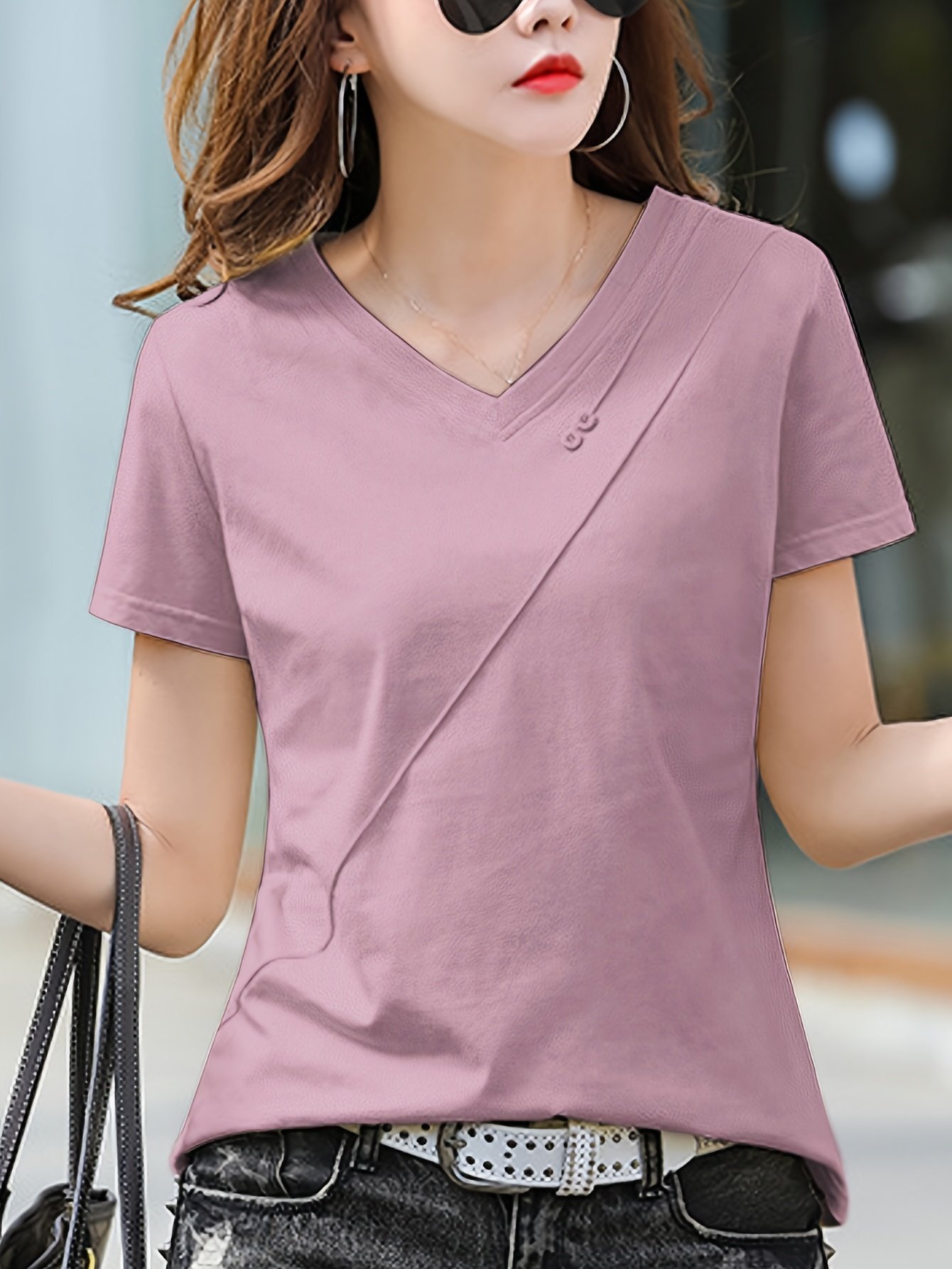 2Pcs Summer Short Sleeved Women Splicing Simple Short Top Slimming Elastic T -Shirt Women
