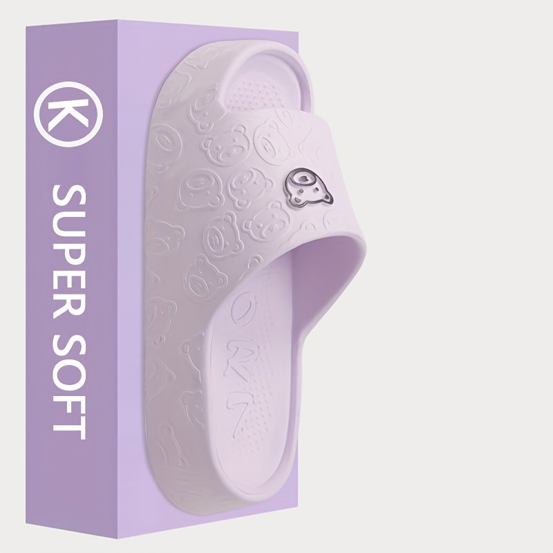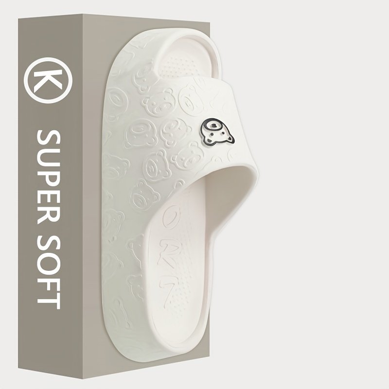 Women’S Thick Sole Non-Slip Eva Slides – Casual Slip-On Beach Indoor/Outdoor Sandals, Cartoon Design, All Seasons, Sizes 36-45, Available In White, Gray, Purple, Green, Black, Pink