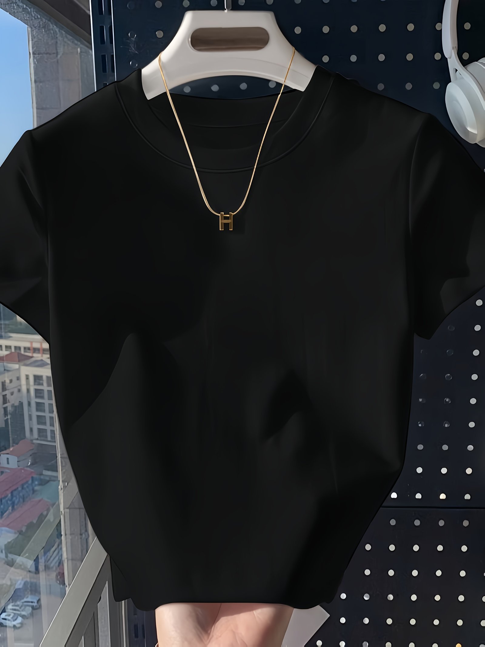 2Pcs Summer Short Sleeved Women Splicing Simple Short Top Slimming Elastic T -Shirt Women