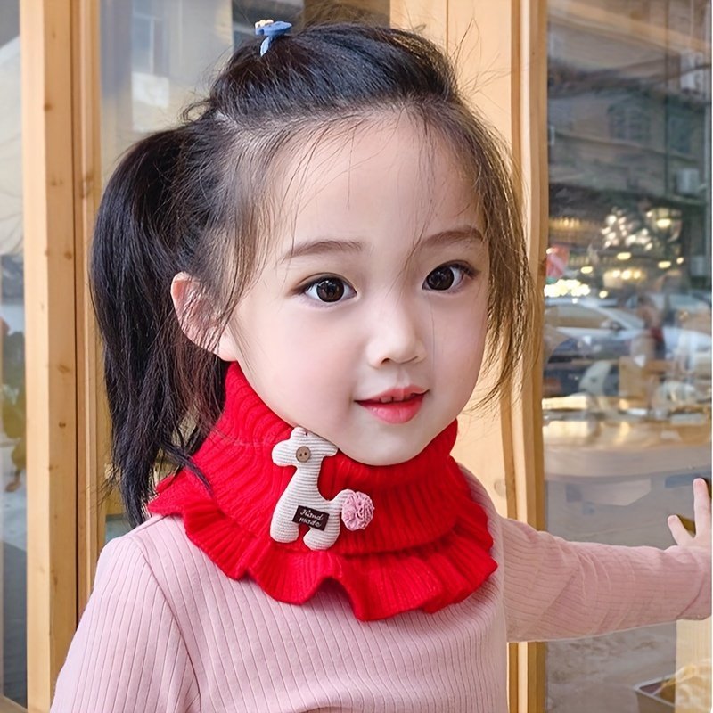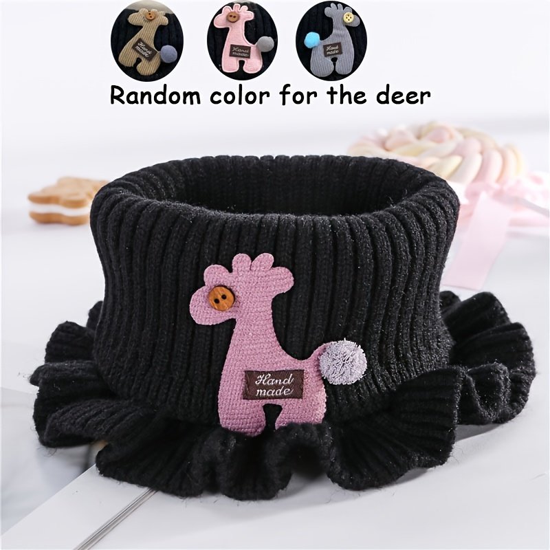 Youngsters’ Winter Knitted Bibs – Windproof Warm Ruffled Collar With Cute Cartoon Animal Applique, Soft Multicolor Options For Boys & Girls, Hand Wash/Dry Clean, Mealtime Apparel