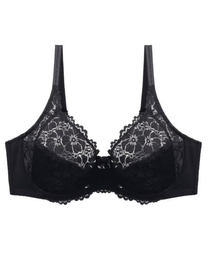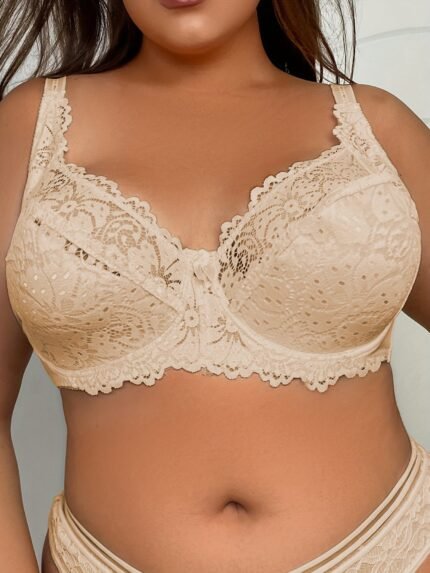 Women’S Plus Elegant Bra, Plus Size Bow Decor Floral Lace Non Padded Underwire Bra