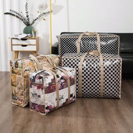 1Pc Vintage Fabric Foldable Storage Bag, Dark Brown, With Strong Zipper And Handle, Space-Saving, Heart Leaf Brand, With Random Printing And Edge Paint, For Moving, Travel, Back To School